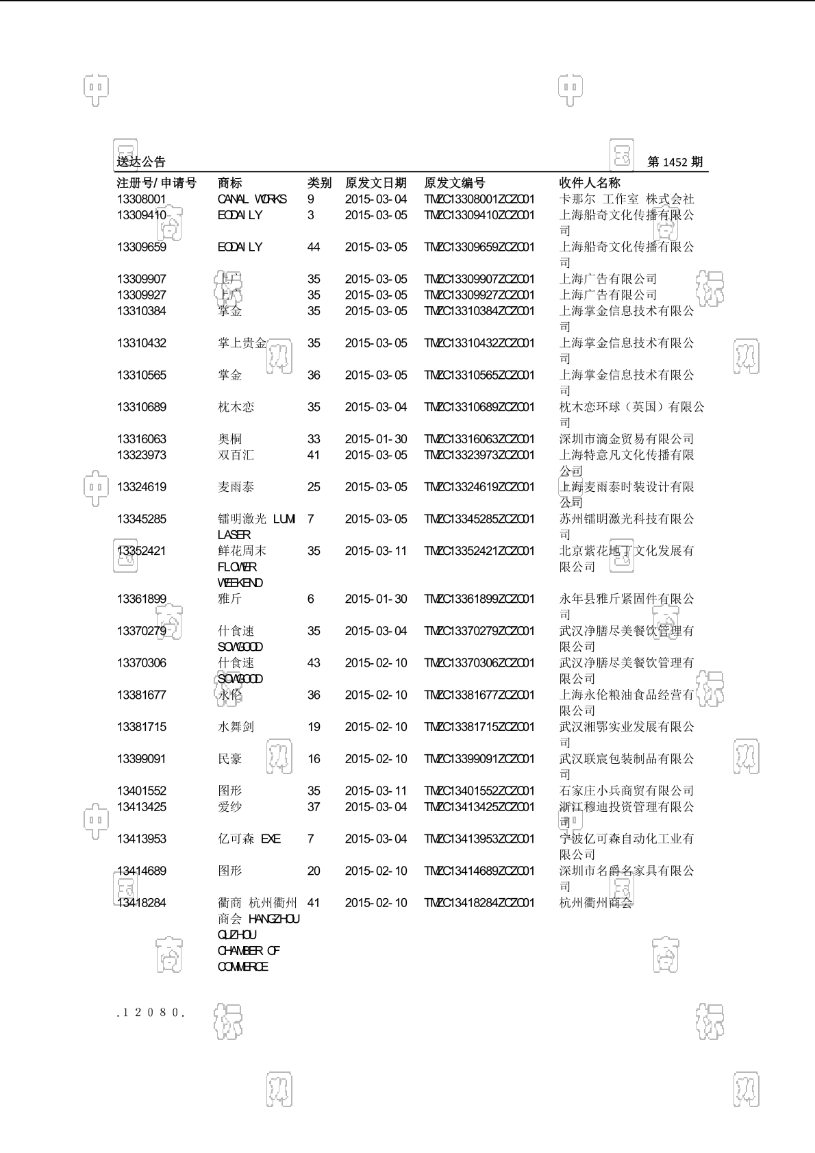 2015-05-24 商标注册申请 | 排版送达公告(商标注册证)
