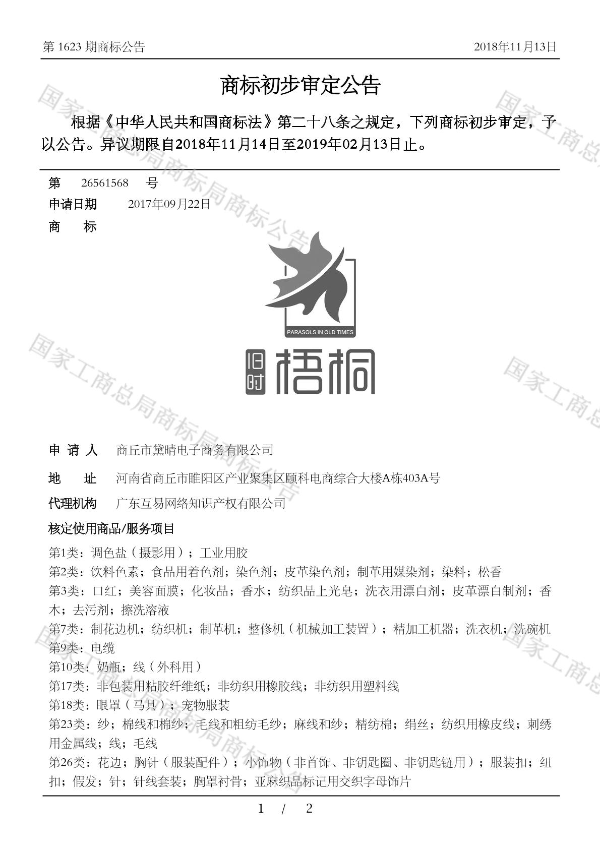 【旧时梧桐 PARASOLS IN OLD TIMES】商标详情