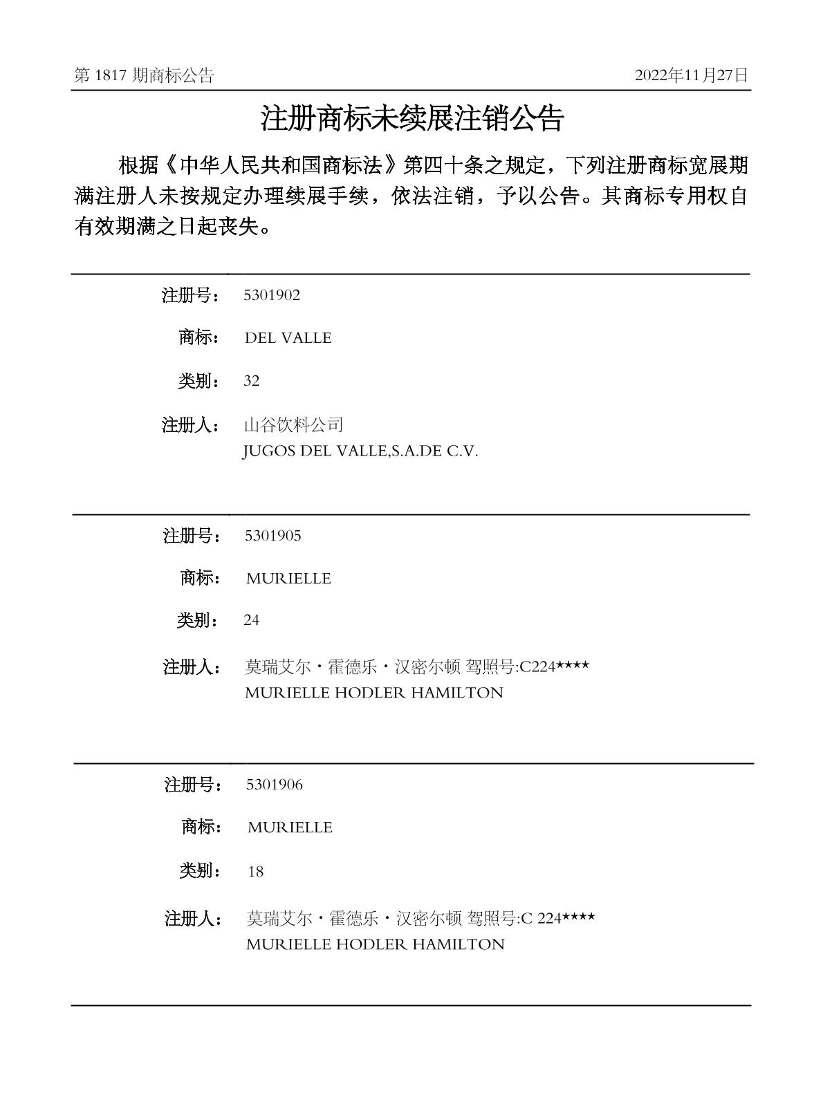 2022-11-28 期满未续展注销商标 | 排版未续展注销公告