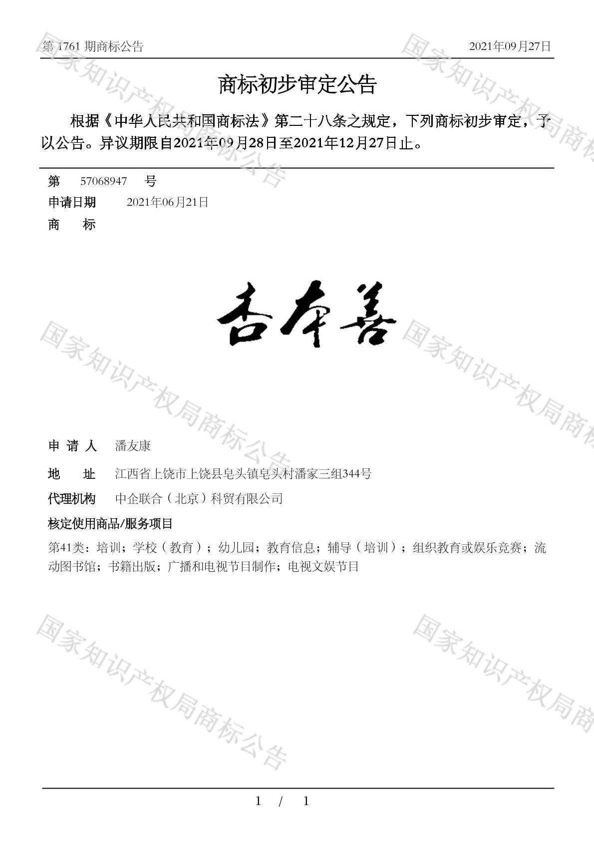 4101-培训;4101-学校(教育);4101-幼儿园;4101-教育信息;4101-辅导(培训);4102-组织教育或娱乐竞赛;4103-流动图书馆;4104-书籍出版;4105-广播和电视节目制作;4105-电视文娱节 目 - 1761