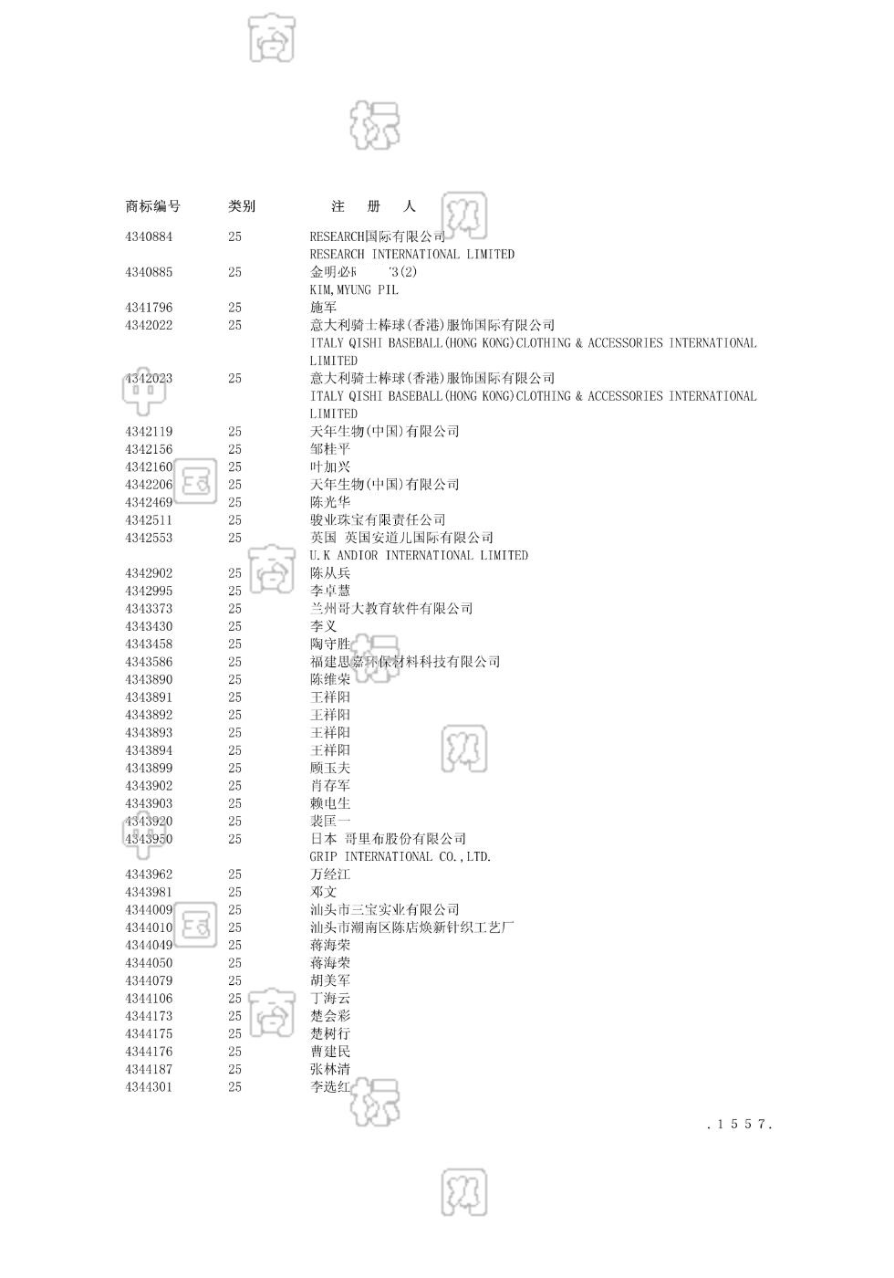 2501-服装;2501-童装;2503-游泳裤;2506-足球鞋;2507-鞋;2508-帽;2509-袜;2510-手套(服装);2511-领带;2512-腰带 - 1120