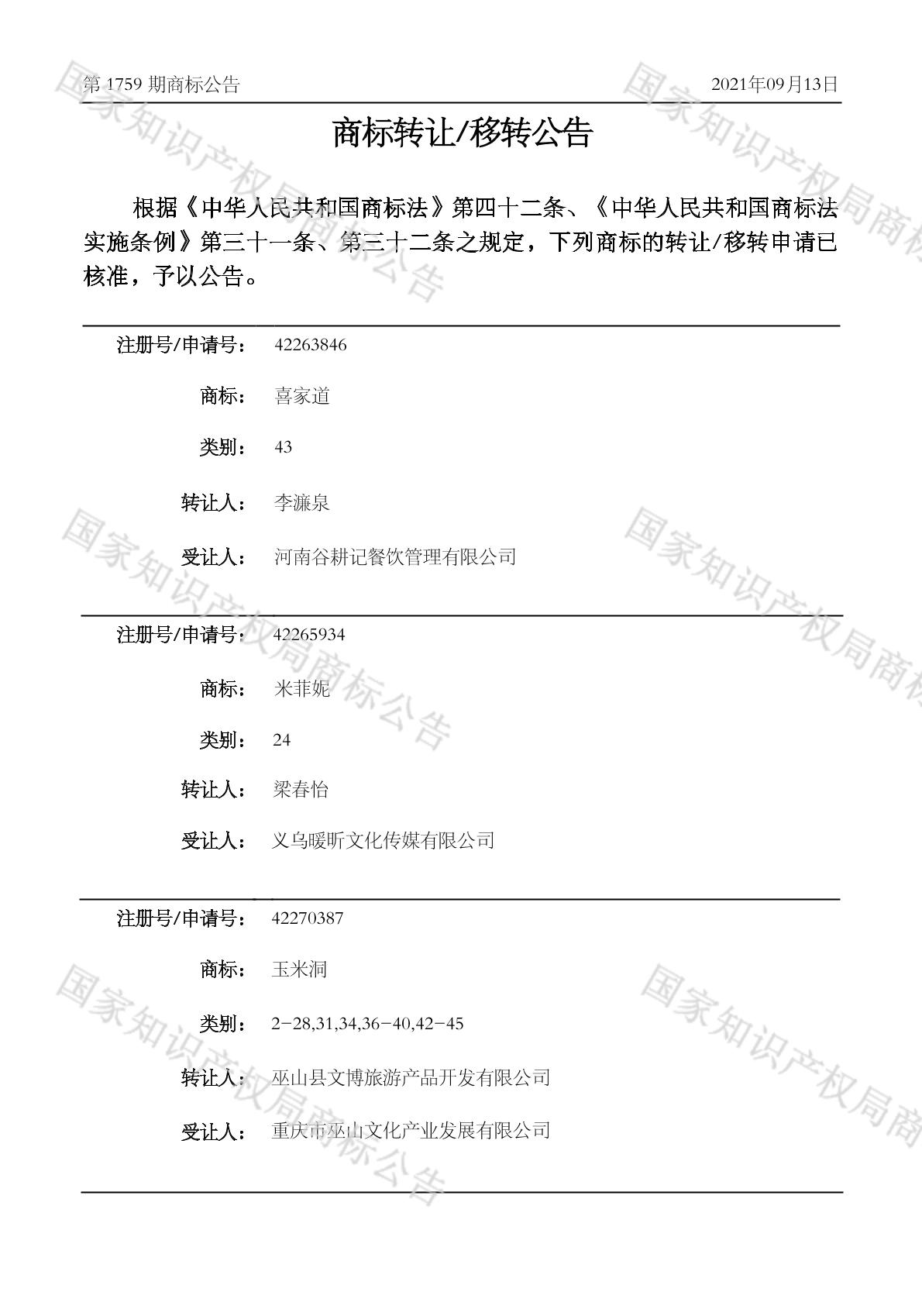 3002-茶;3002-茶饮料;3007-包子;3007-卷饼;3007-发糕;3007-叶儿粑;3007-春卷;3007-油条;3007-面粉制丸子;3007-饺子 - 重庆巫山文旅集团有限公司