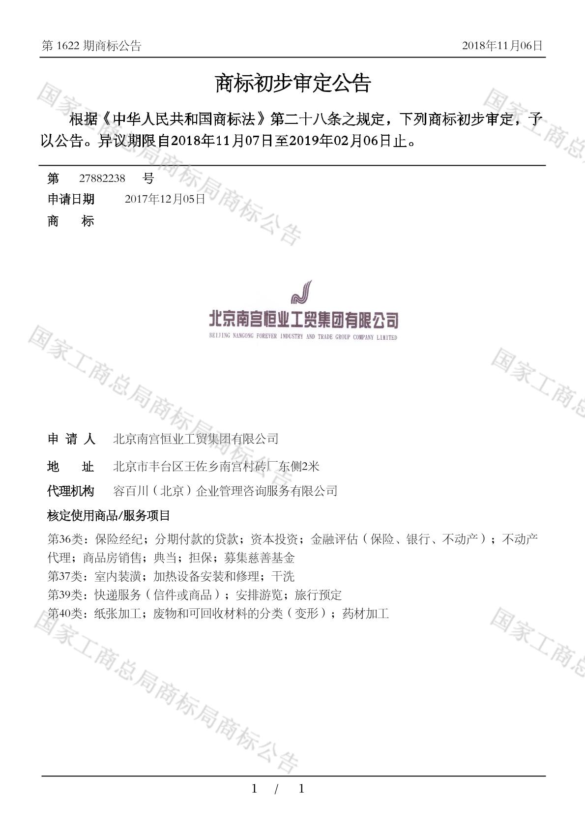 - 北京南宫恒业工贸集团有限公司 BEIJING NANGONG FOREVER AND TRADE GROUP COMPANY LIMITED