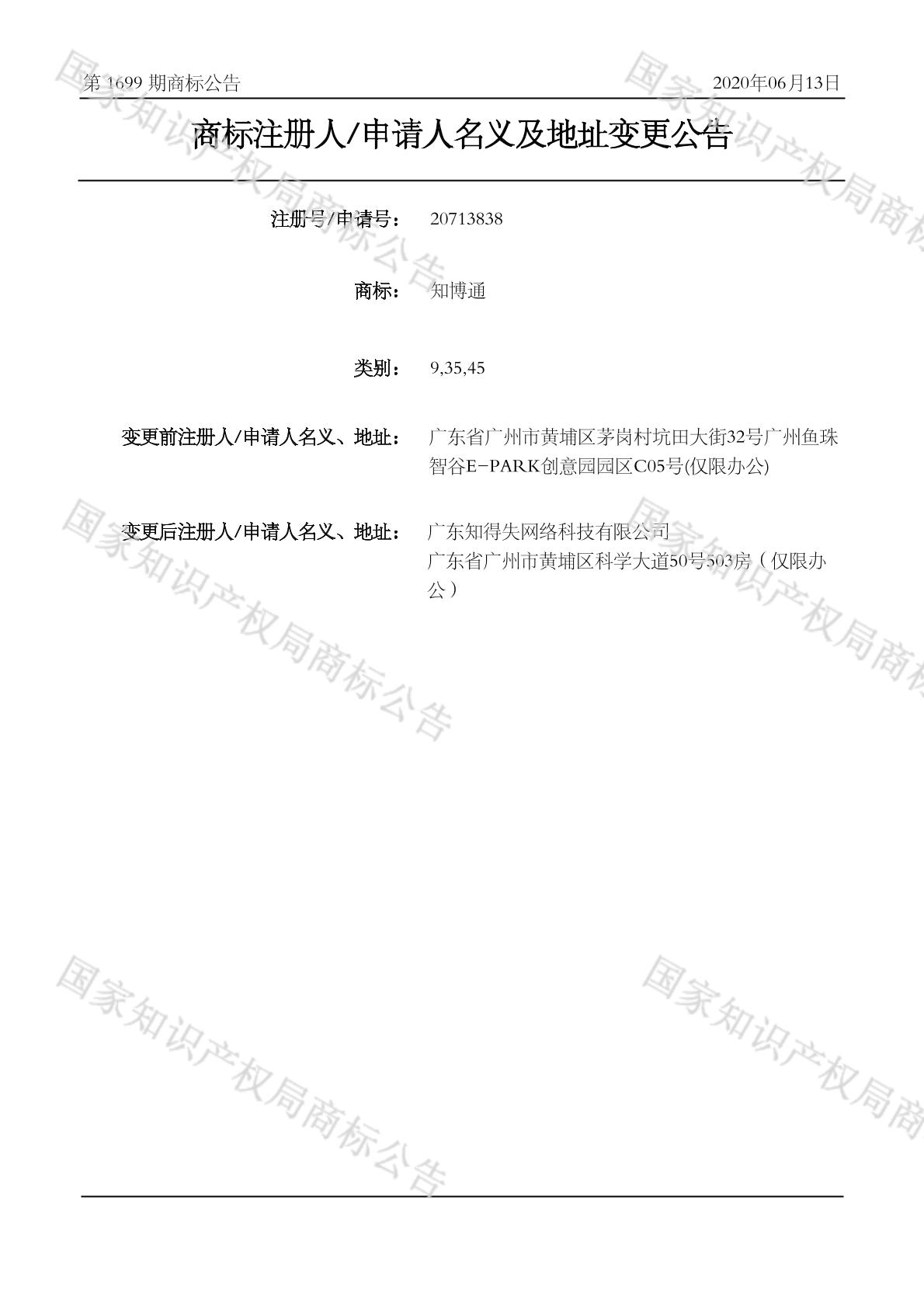 2020-06-08 变更商标申请人/注册人名义/地址 | 核准证明打印发送