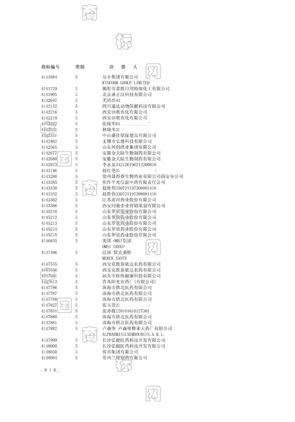 0501-补药(药);0502-医用营养食物;0502-医用食物营养制剂;0503-空气清新剂;0504-牲畜用洗涤剂;0506-医用手镯;0507-假牙用瓷料 - 1055