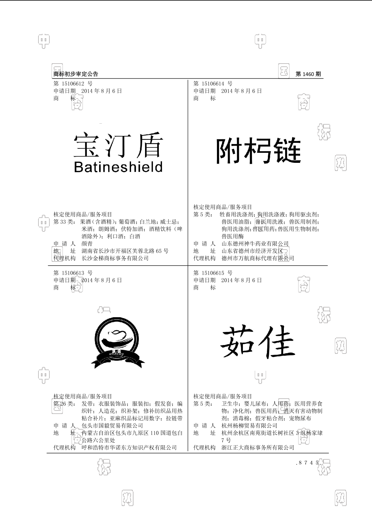 1801-仿皮革;1801-动物皮;1801-裘皮;1802-包;1802-手提箱;1802-钥匙包;1802-钱包(钱夹);1804-伞;1806-动物外套;1806-马具配件 - 1460