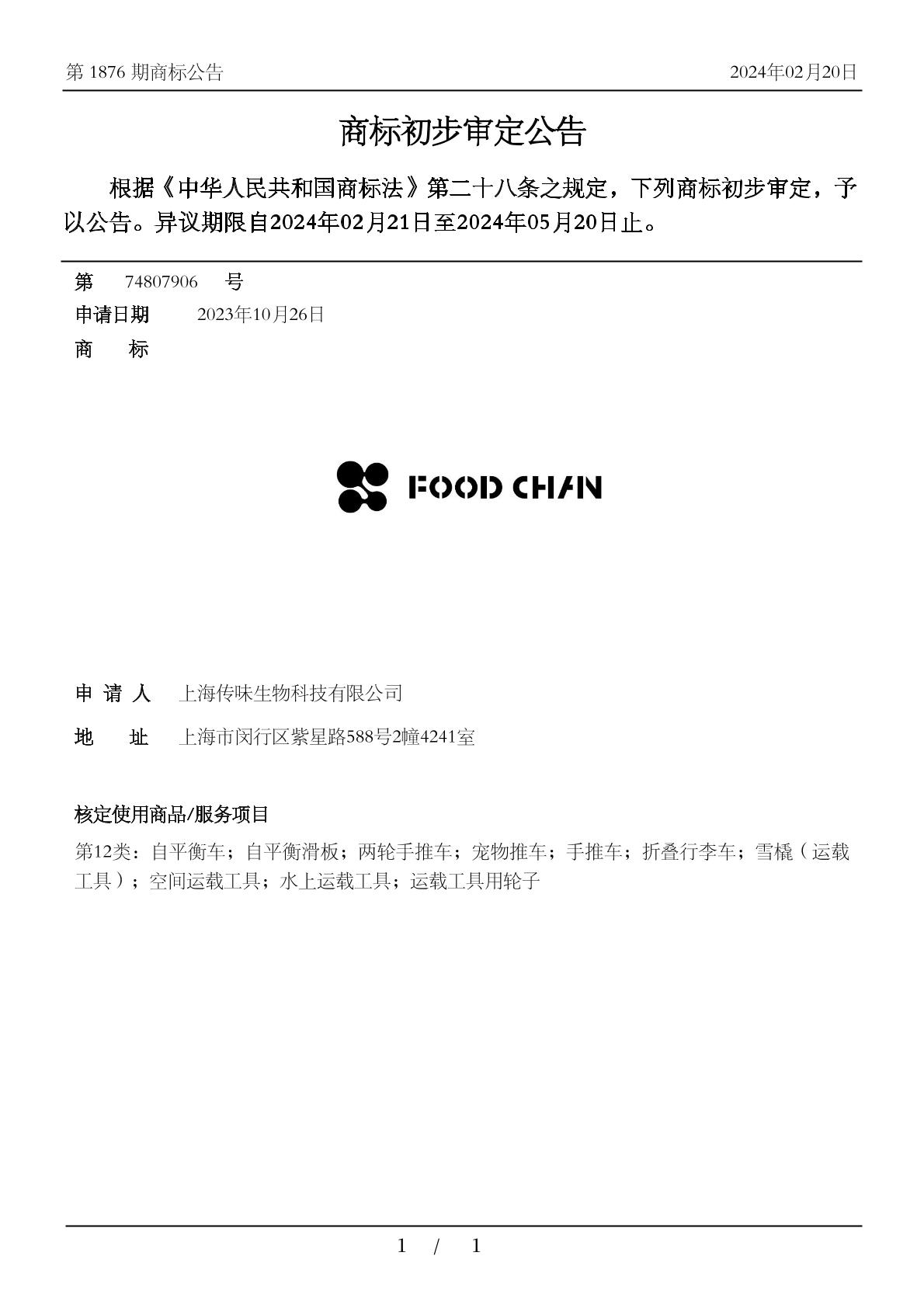 1204-自平衡滑板;1204-自平衡车;1206-两轮手推车;1206-宠物推车;1206-手推车;1206-折叠行李车;1207-雪橇(运载工具);1209-空间运载工具;1210-水上运载工具;1211-运载工具用轮子 - 1876