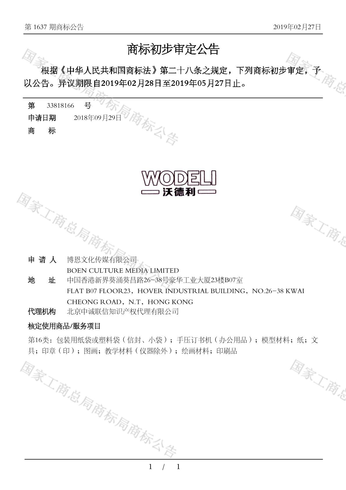1601-纸;1605-印刷品;1607-图画;1609-包装用纸袋或塑料袋(信封、小袋);1610-手压订书机(办公用品);1611-文具;1613-印章(印);1617-绘画材料;1619-教学材料(仪器除外);1620-模型材料 - 1637