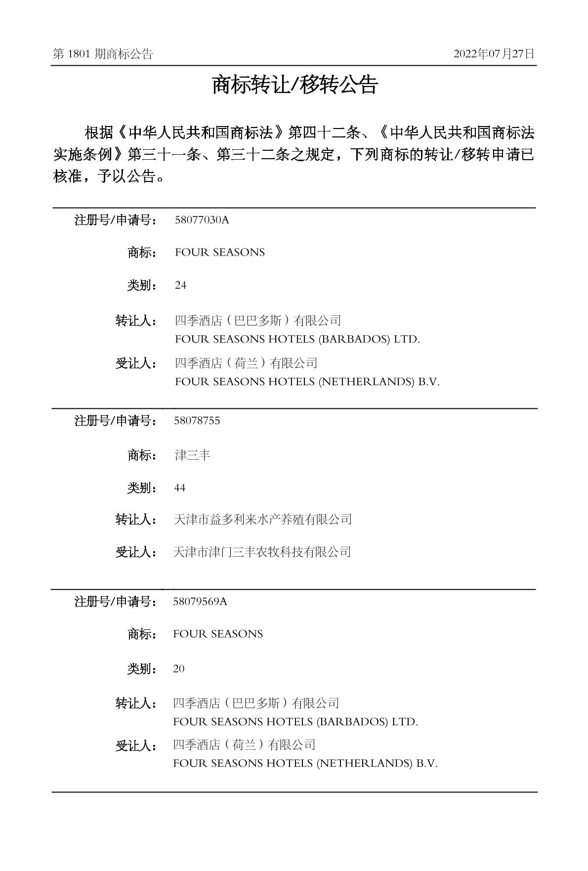 【FOUR SEASONS】商标详情
