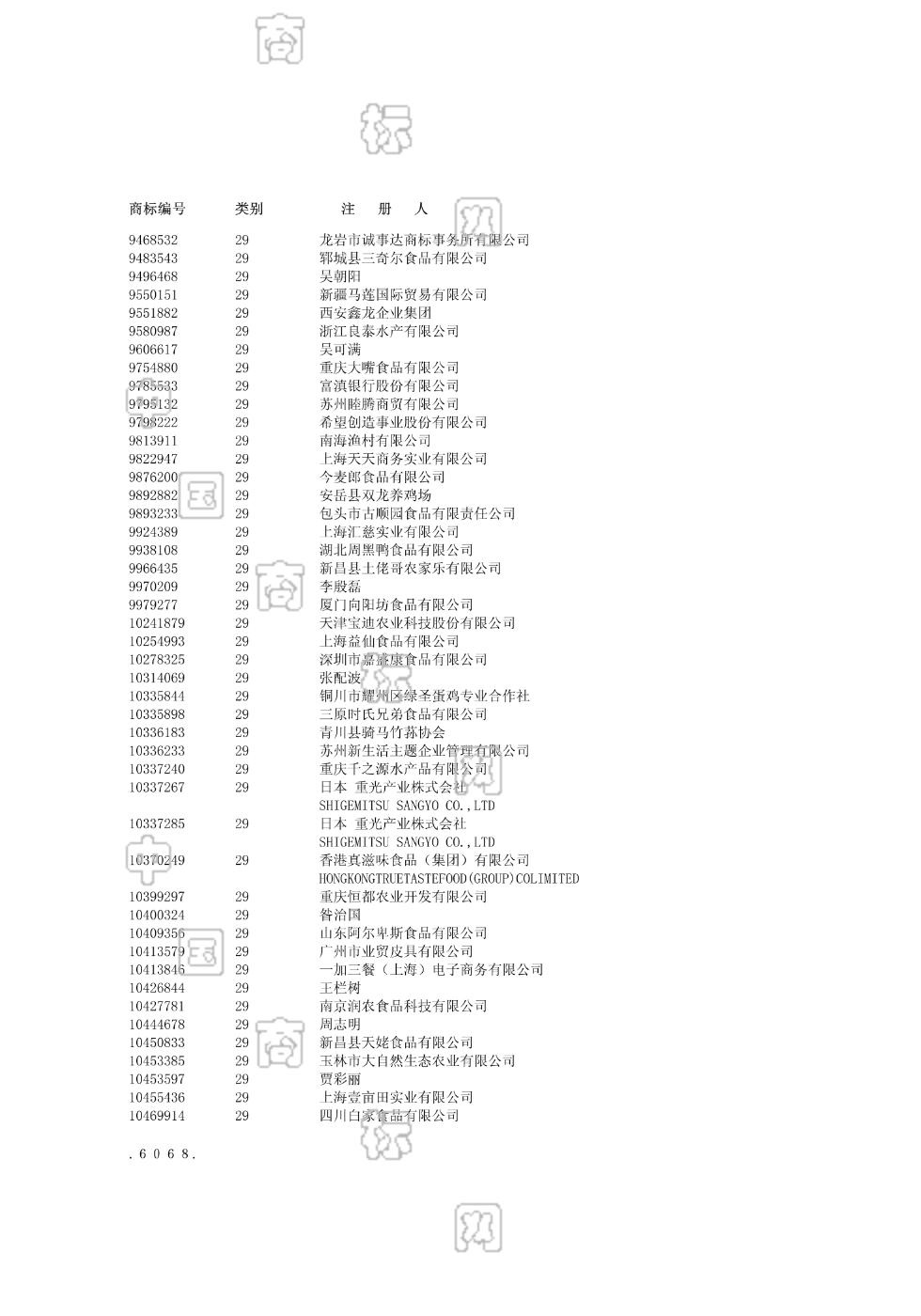 2901-肉;2902-鱼(非活的);2903-罐装水果;2904-土豆片;2905-汤;2906-蛋;2908-食用油脂;2909-水果色拉;2910-果冻;2911-精制坚果仁;2912-干食用菌;2913-豆腐制品 - 1369