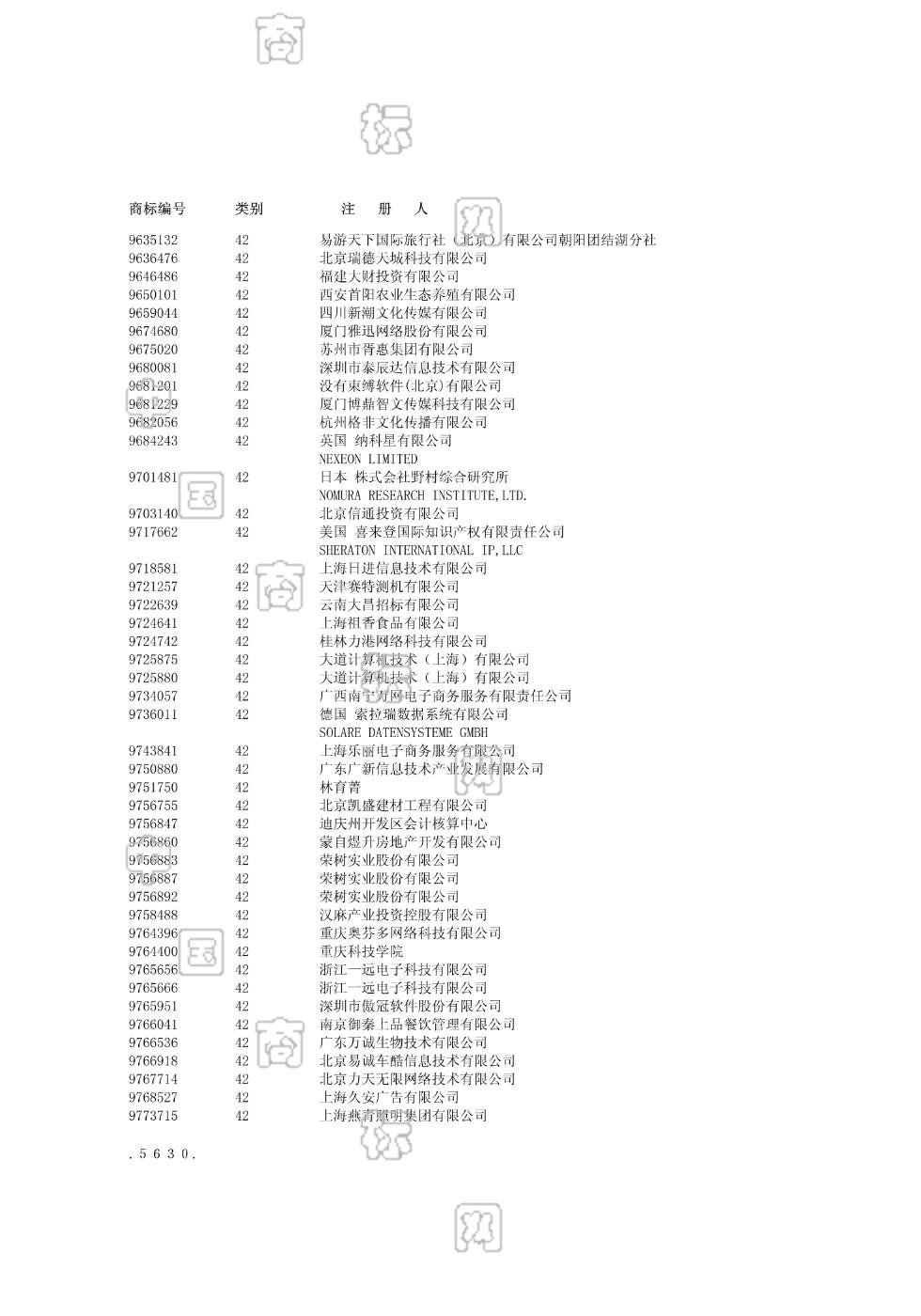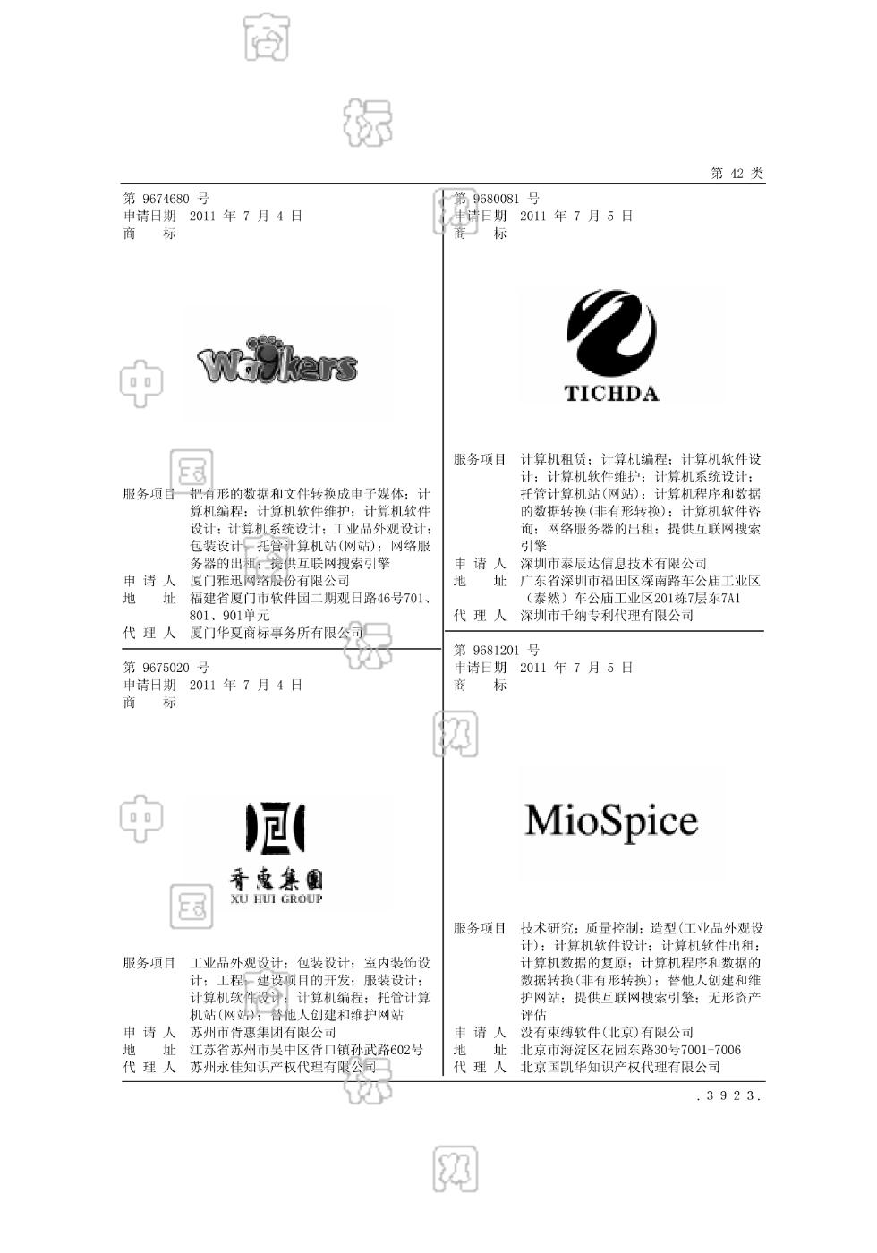 4216-包装设计;4216-工业品外观设计;4220-托管计算机站(网站);4220-把有形的数据和文件转换成电子媒体;4220-提供互联网搜索引擎;4220-网络服务器的出租;4220-计算机系统设计;4220-计算机编程;4220-计算机软件维护;4220-计算机软件设计 - 1317