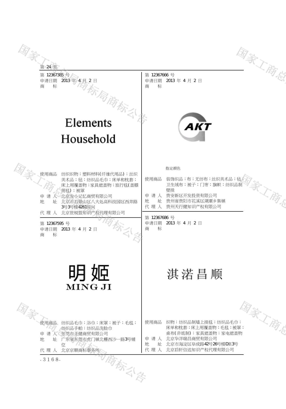 2401-布;2401-装饰织品;2402-无纺布;2403-丝织美术品;2403-纺织品制壁挂;2404-毡;2405-卫生绒布;2406-被子;2407-门帘;2410-旗帜 - 1411