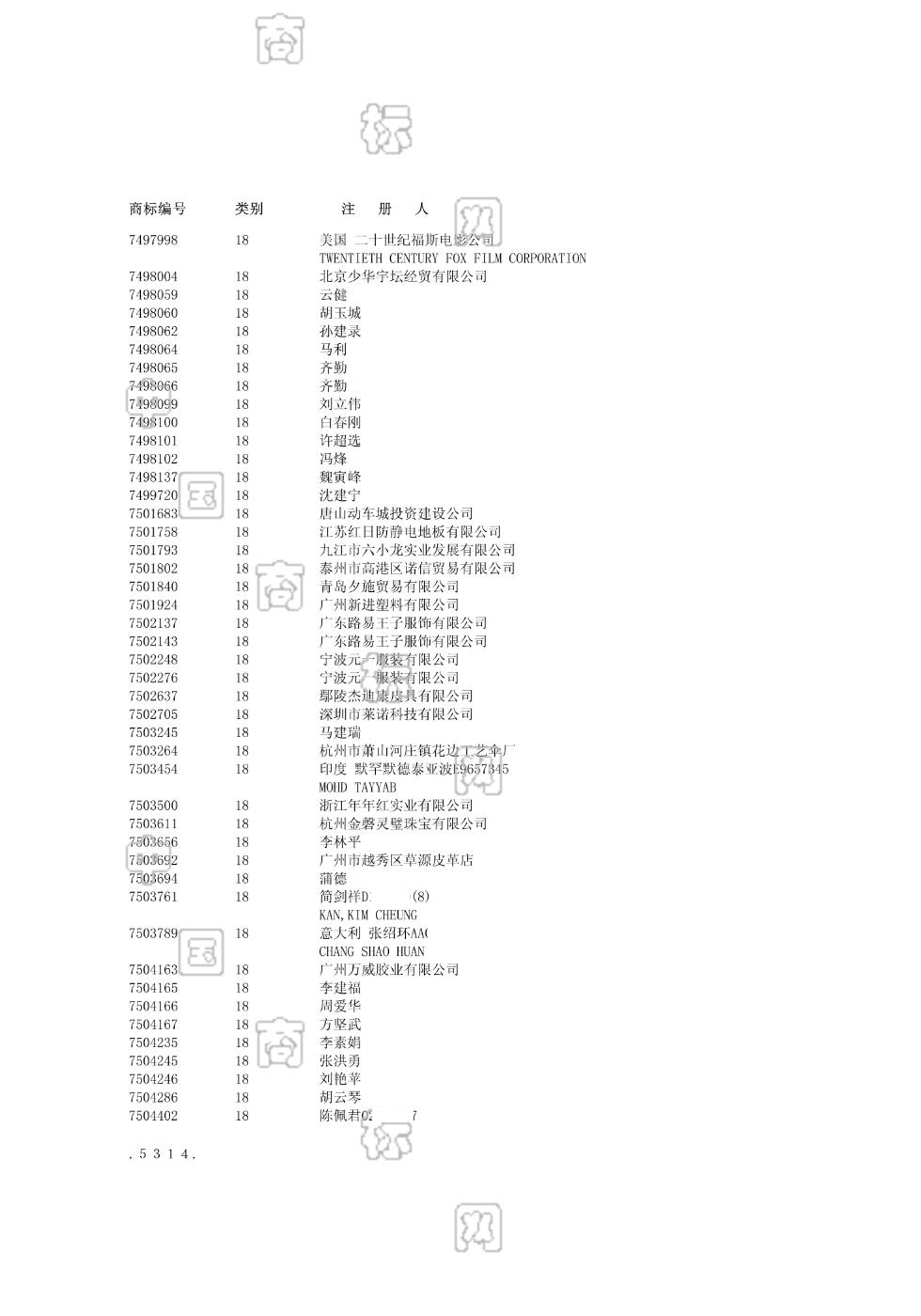 1801-(动物)皮;1801-牛皮;1803-兽皮;1803-裘皮;1805-手杖;1805-手杖柄;1806-动物项圈;1806-皮带(马具);1807-香肠肠衣 - 1226