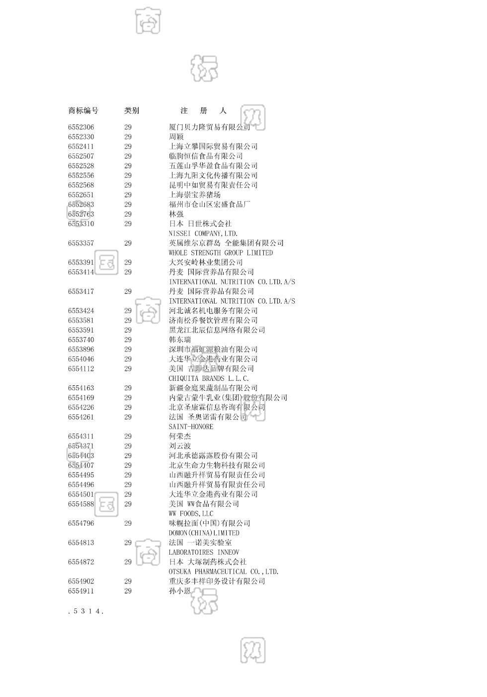 2901-猪肉食品;2902-鱼制食品;2903-罐装水果;2904-果酱;2907-牛奶制品;2907-牛奶饮料(以牛奶为主的);2908-涂面包片用脂肪混合物;2908-食用油;2908-食用油.;2908-食用油脂 - 1182