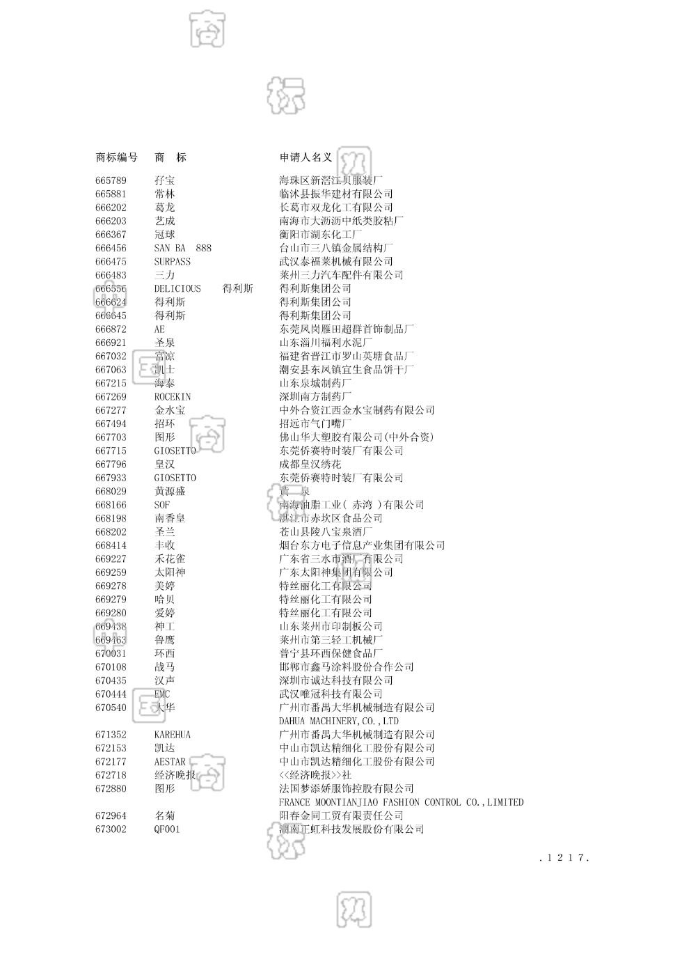 商标注册人申请人名义及地址变更公告 2008-10-06 第1138期 查看公告