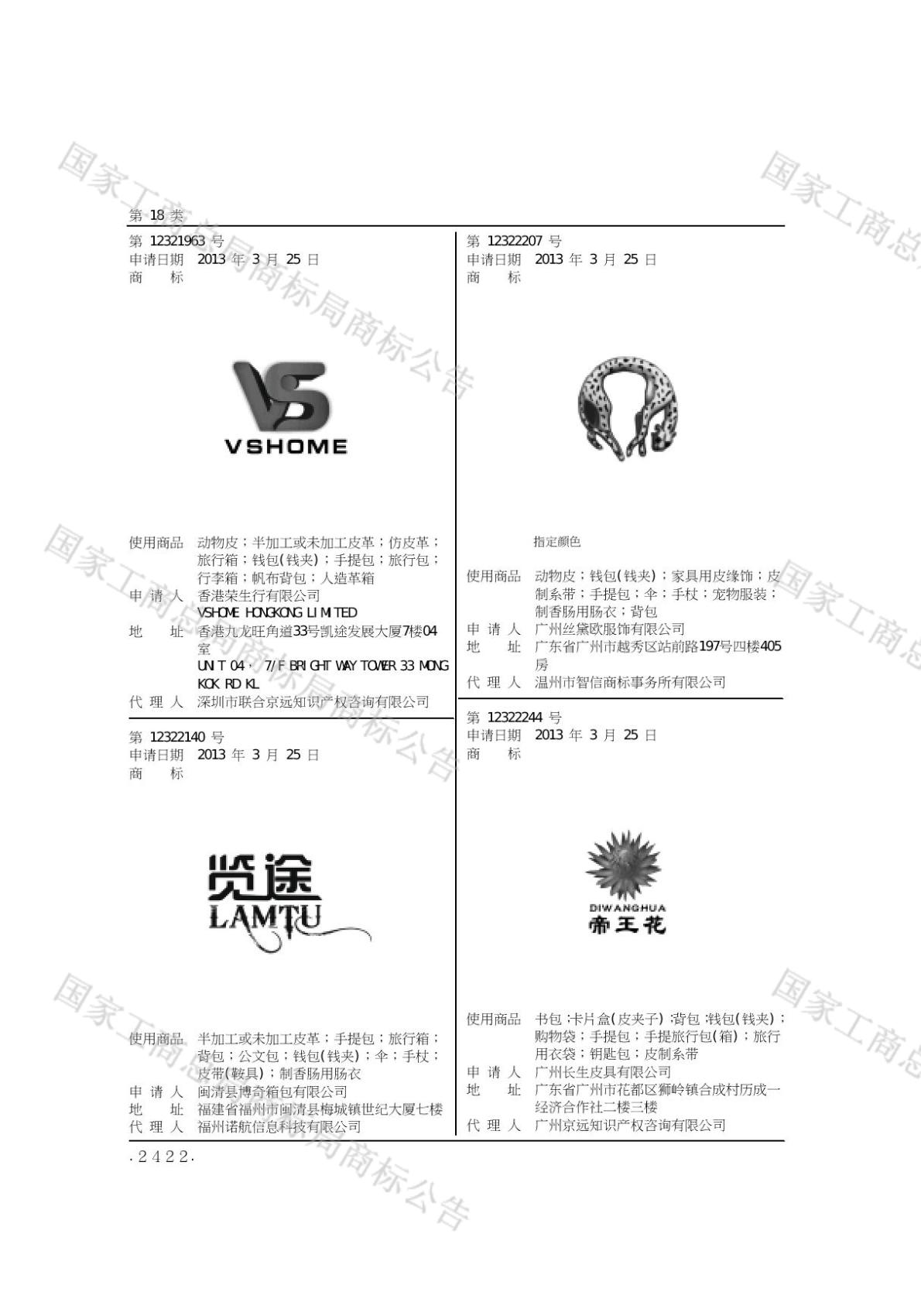 1801-动物皮;1802-家具用皮缘饰;1802-手提包;1802-皮制系带;1802-背包;1802-钱包(钱夹);1804-伞;1805-手杖;1806-宠物服装;1807-制香肠用肠衣 - 1410