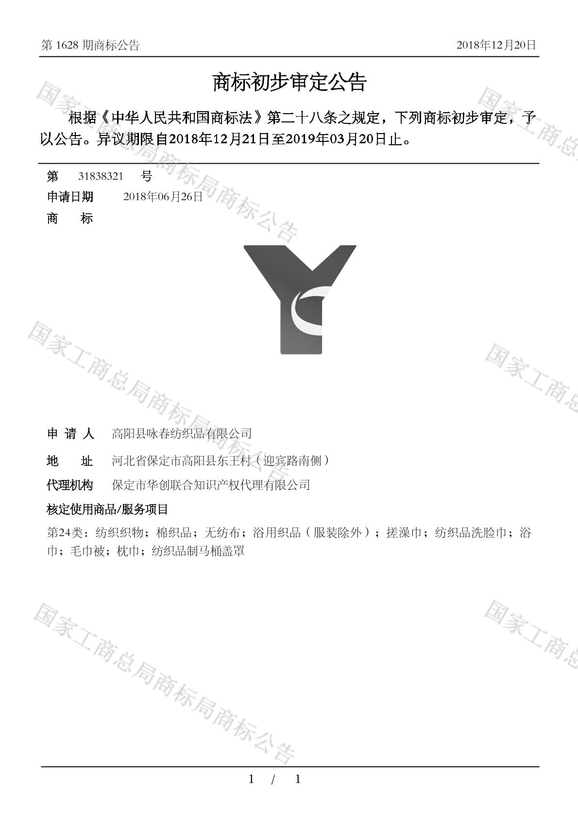 2401-棉织品;2401-纺织织物;2402-无纺布;2405-搓澡巾;2405-浴巾;2405-浴用织品(服装除外);2405-纺织品洗脸巾;2406-枕巾;2406-毛巾被;2407-纺织品制马桶盖罩 - 1628