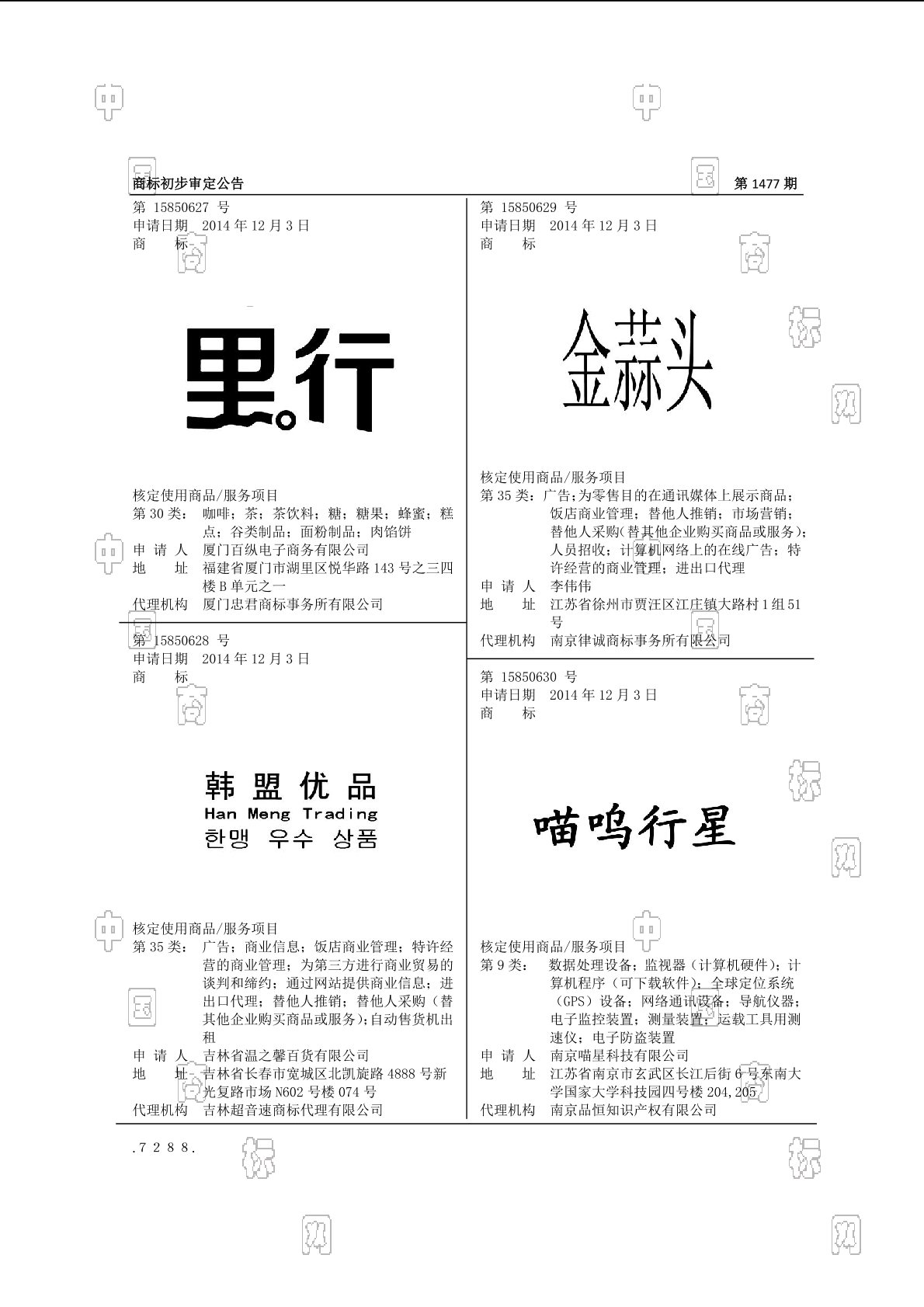 2016-01-27 商标注册申请 | 商标注册申请注册公告排版完成