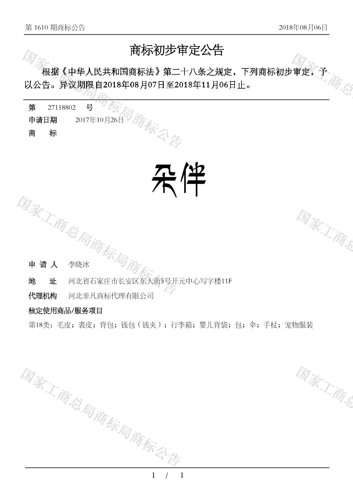 1801-毛皮;1801-裘皮;1802-包;1802-婴儿背袋;1802-背包;1802-行李箱;1802-钱包(钱夹);1804-伞;1805-手杖;1806-宠物服装 - 1610