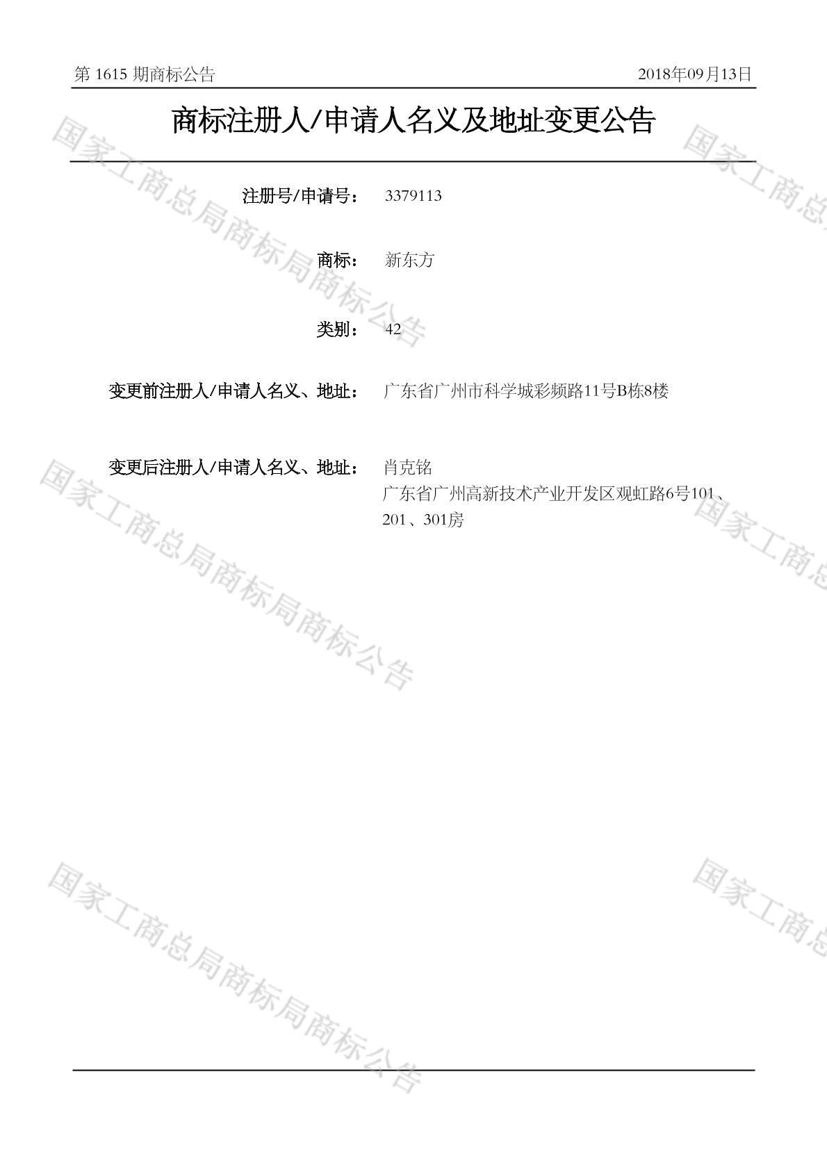2018-09-16 变更商标申请人/注册人名义/地址 | 核准证明打印发送