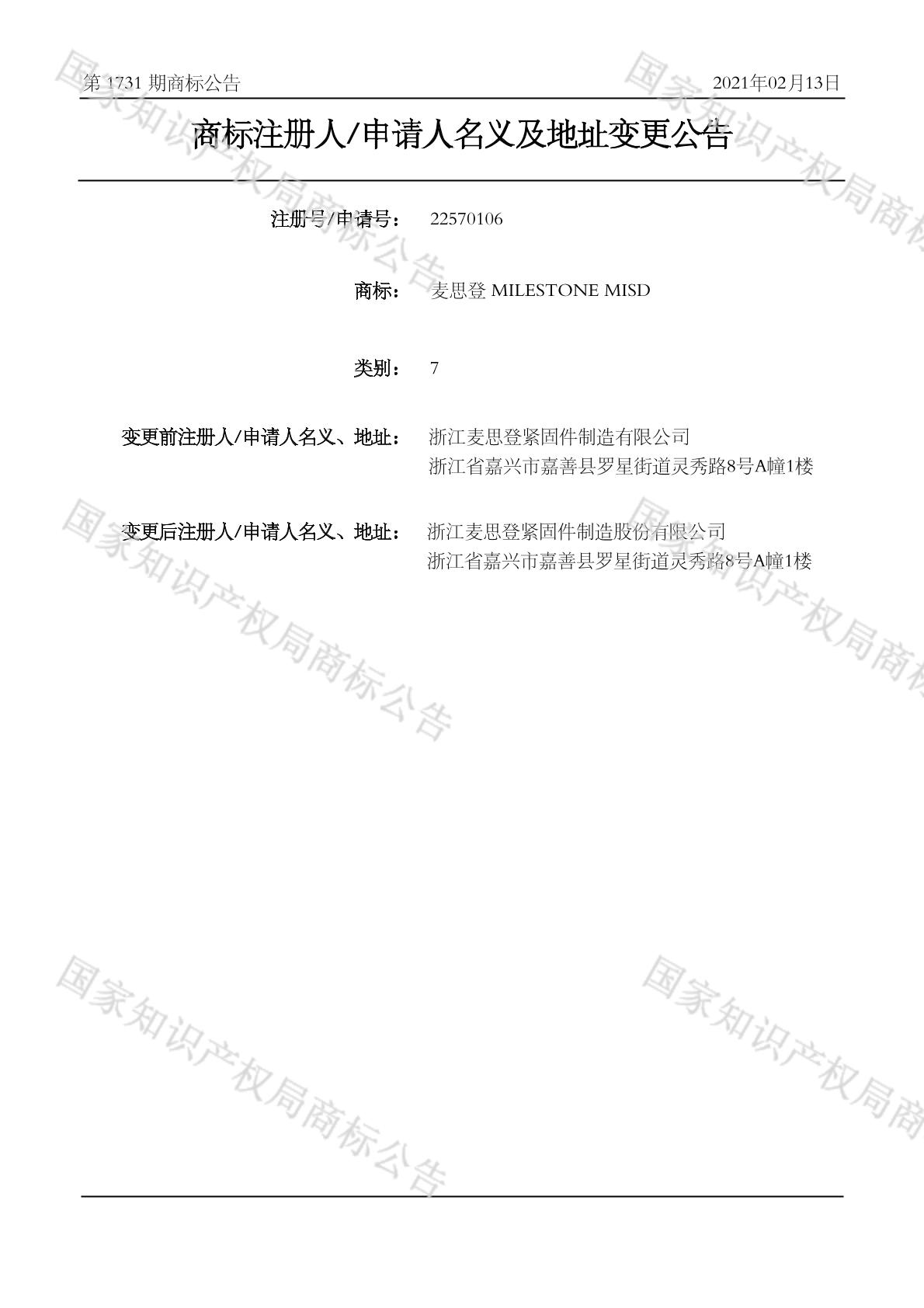 2021-02-02 变更商标申请人/注册人名义/地址 | 核准证明打印发送