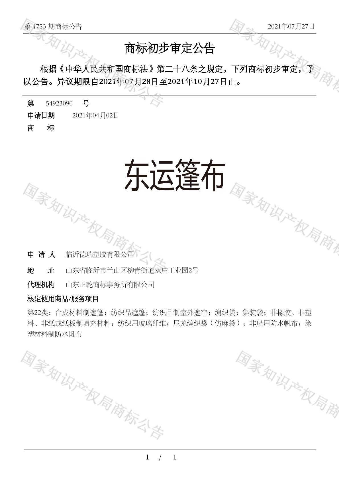 2202-合成材料制遮篷;2202-涂塑材料制防水帆布;2202-纺织品制室外遮帘;2202-纺织品遮篷;2202-非船用防水帆布;2203-尼龙编织袋(仿麻袋);2203-编织袋;2203-集装袋;2204-非橡胶、非塑料、非纸或纸板制填充材料;2205-纺织用玻璃纤维 - 1753