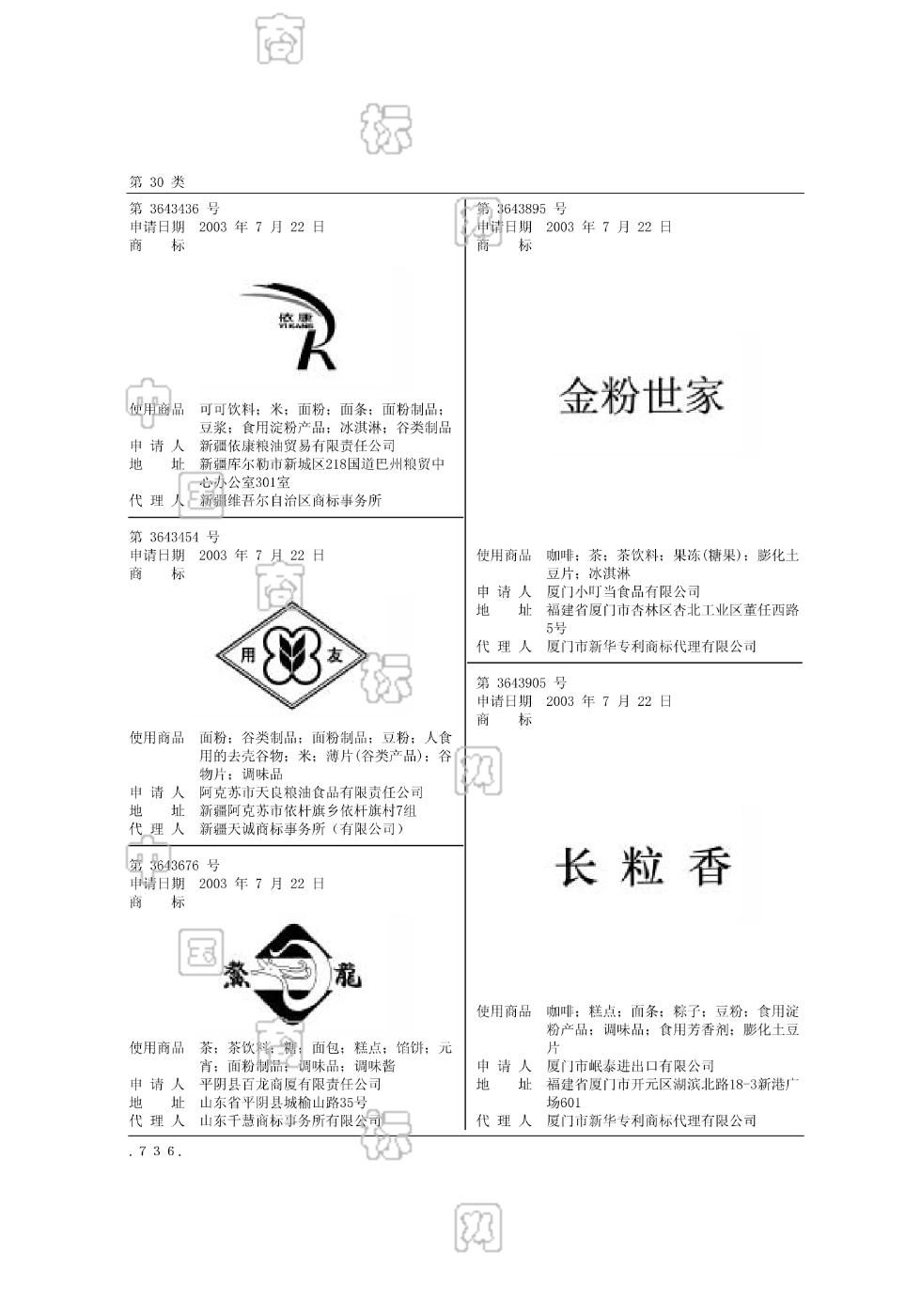 3002-茶;3002-茶饮料;3003-糖;3006-糕点;3006-面包;3007-元宵;3007-馅饼;3009-面粉制品;3016-调味品;3016-调味酱 - 957
