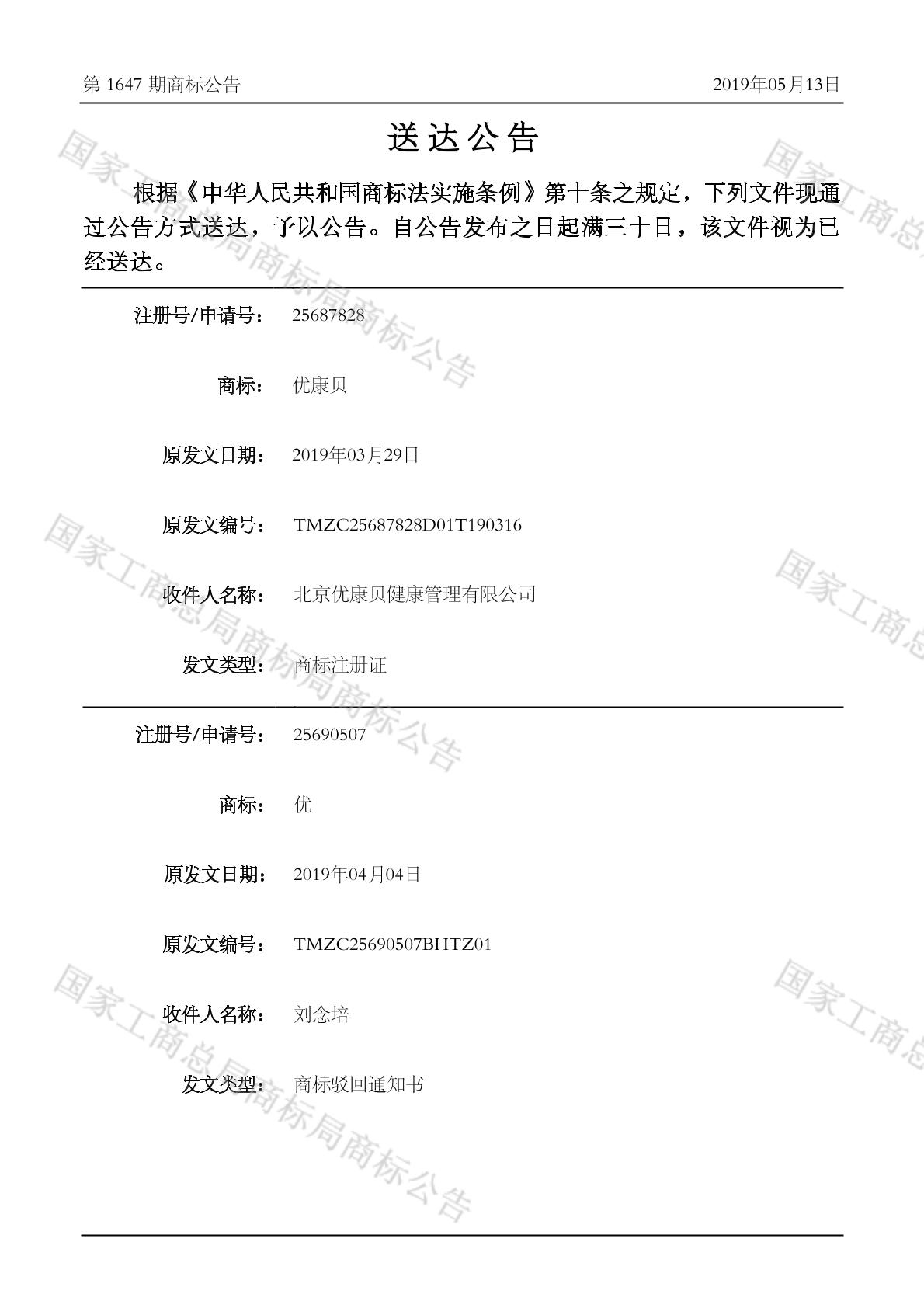 2019-05-13 商标注册申请 | 排版送达公告(商标驳回通知书)