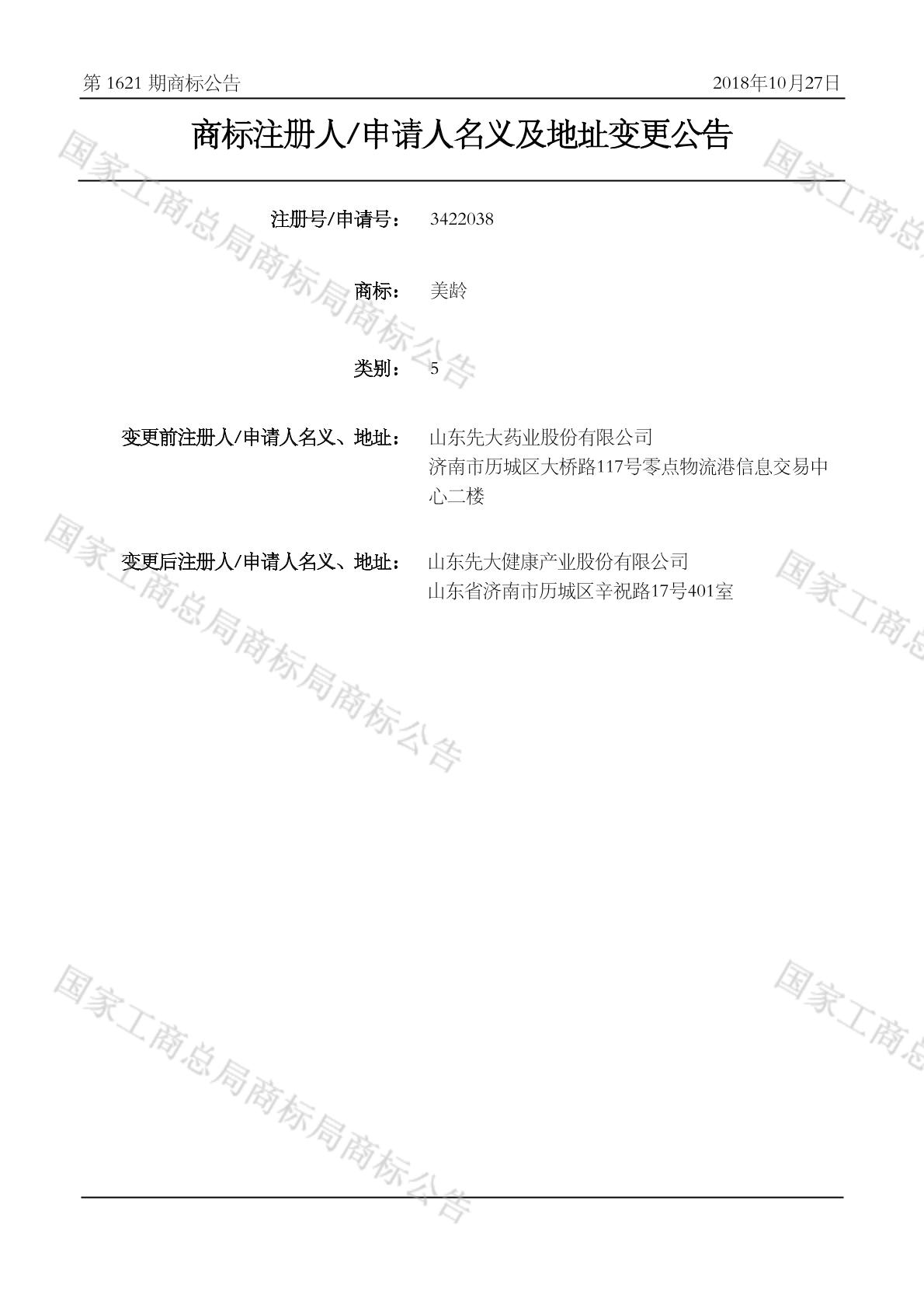 商标注册人申请人名义及地址变更公告 2018-10-27 第1621期 查看公告