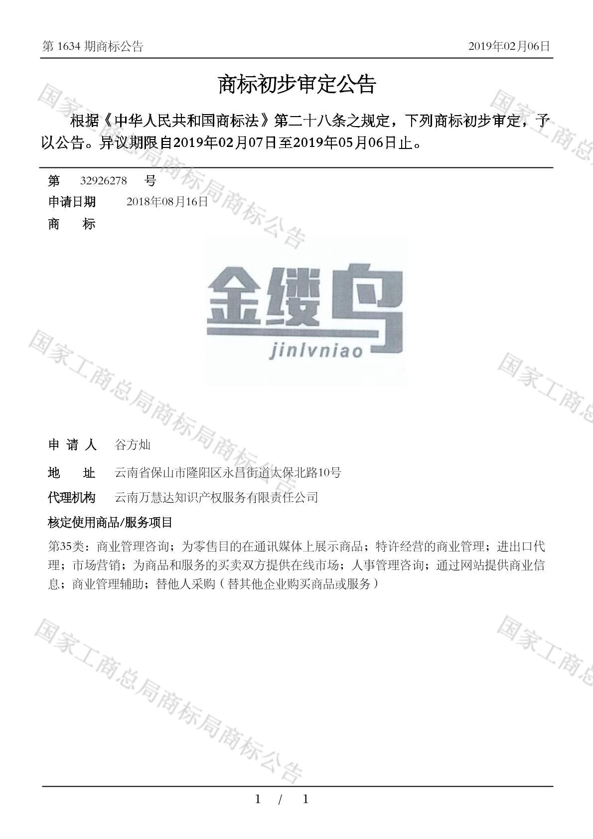 【金缕鸟】商标详情