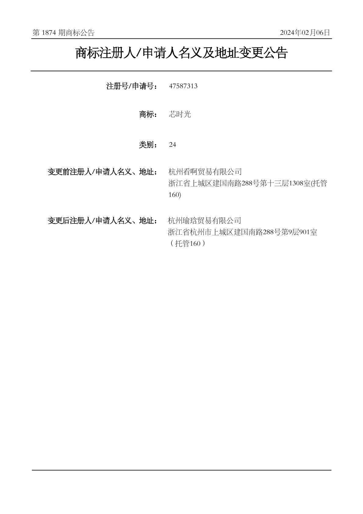 2024-02-05 变更商标申请人/注册人名义/地址 | 核准证明打印发送