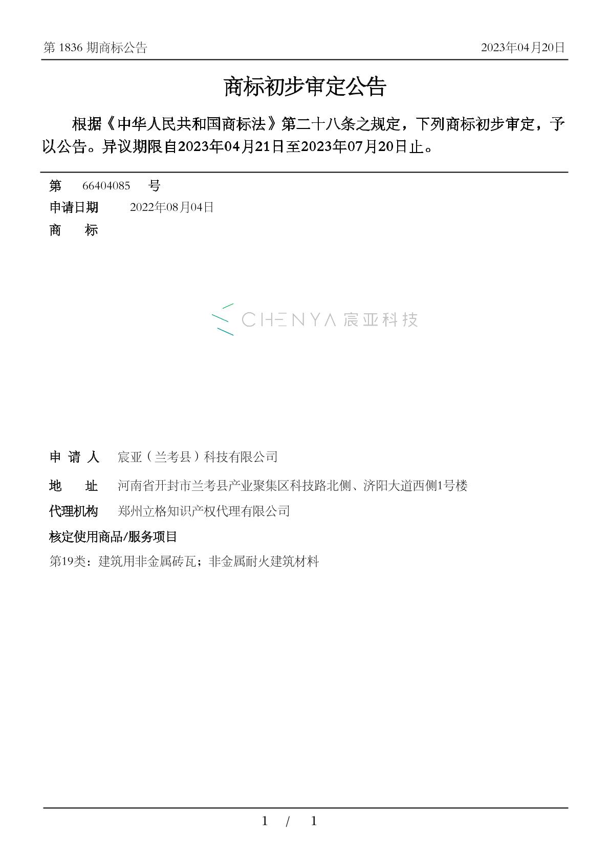 【CHENYA 宸亚科技】商标详情