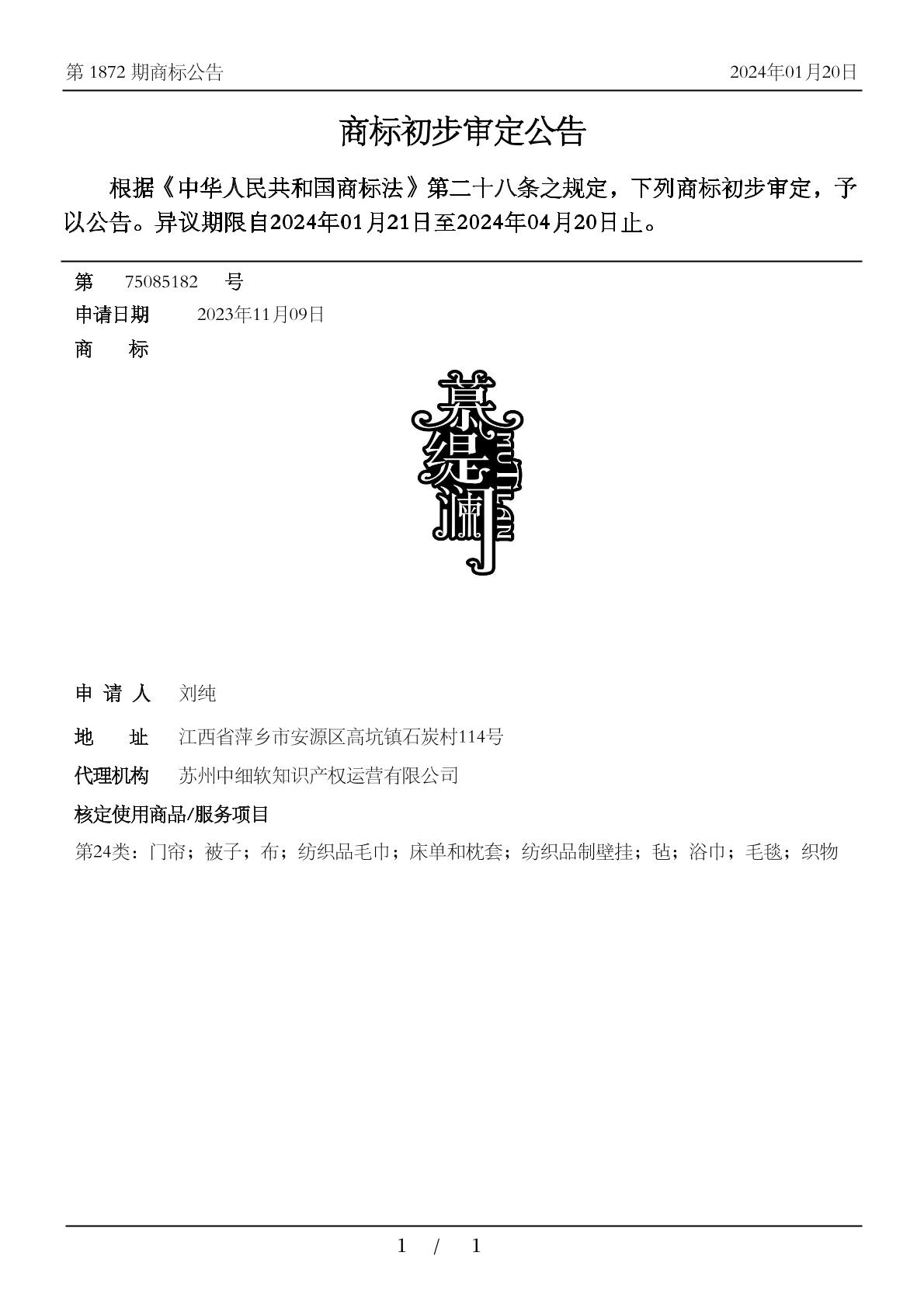 2401-布;2401-织物;2403-纺织品制壁挂;2404-毡;2405-浴巾;2405-纺织品毛巾;2406-床单和枕套;2406-毛毯;2406-被子;2407-门帘 - 1872