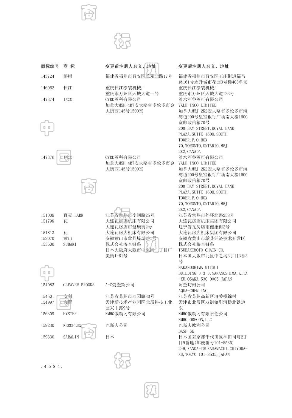 商标注册人申请人名义及地址变更公告 1997-02-07 第578期 查看公告