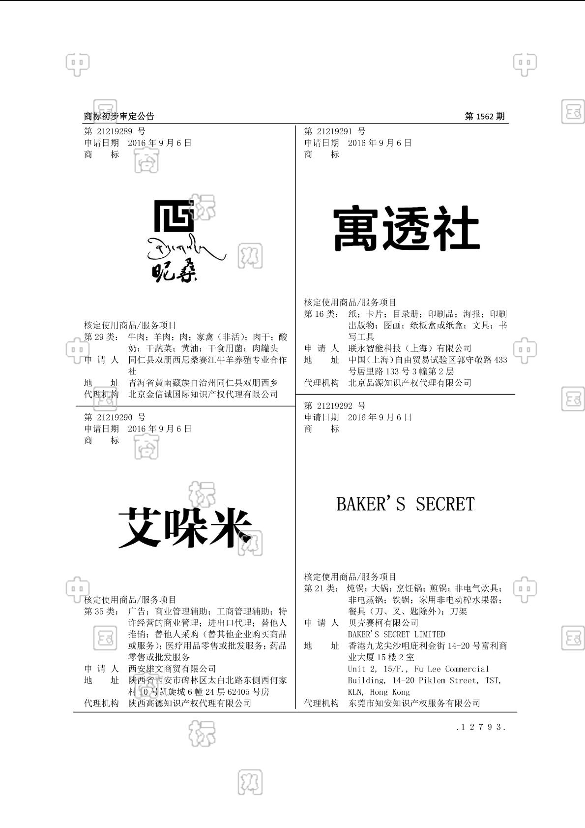 2016-11-03 商标注册申请 | 等待受理通知书发文