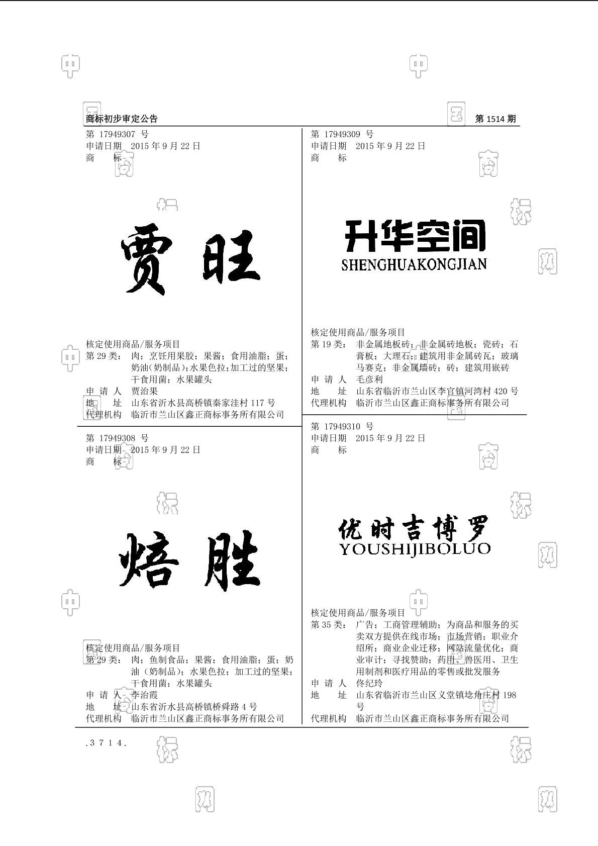 2901-肉;2903-水果罐头;2904-果酱;2906-蛋;2907-奶油(奶制品);2908-食用油脂;2909-水果色拉;2910-烹饪用果胶;2911-加工过的坚果;2912-干食用菌 - 1514