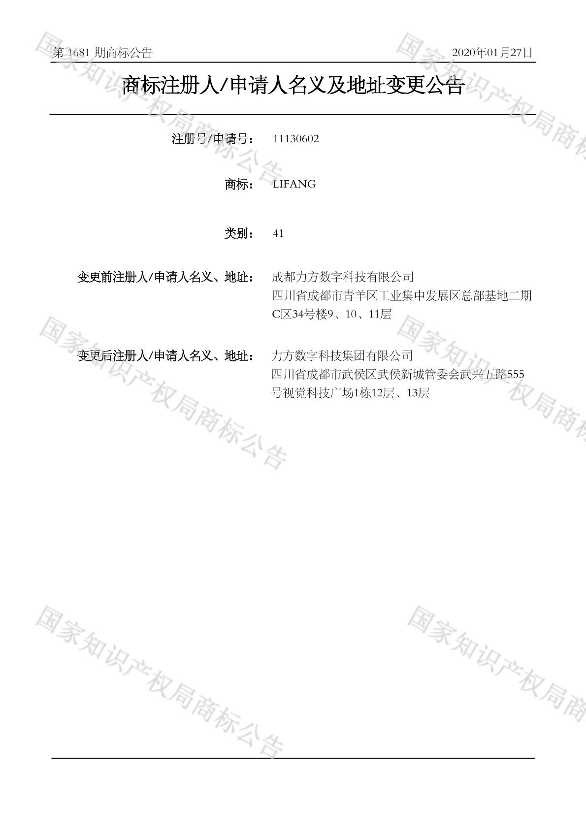 2020-01-09 变更商标申请人/注册人名义/地址 | 核准证明打印发送