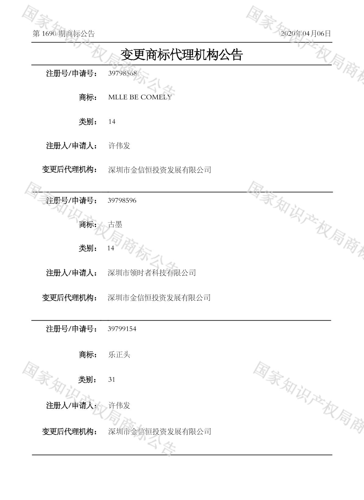 2020-03-24 变更商标代理人 | 核准通知打印发送