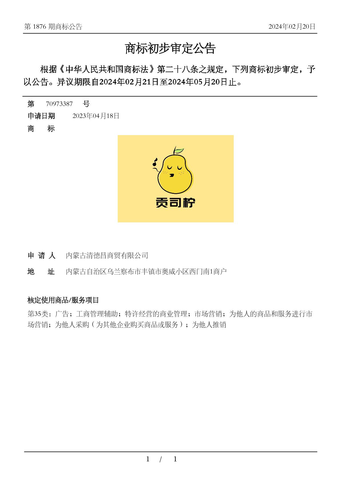 2903-水果罐头;2907-酸奶 - 内蒙古清德昌商贸有限公司