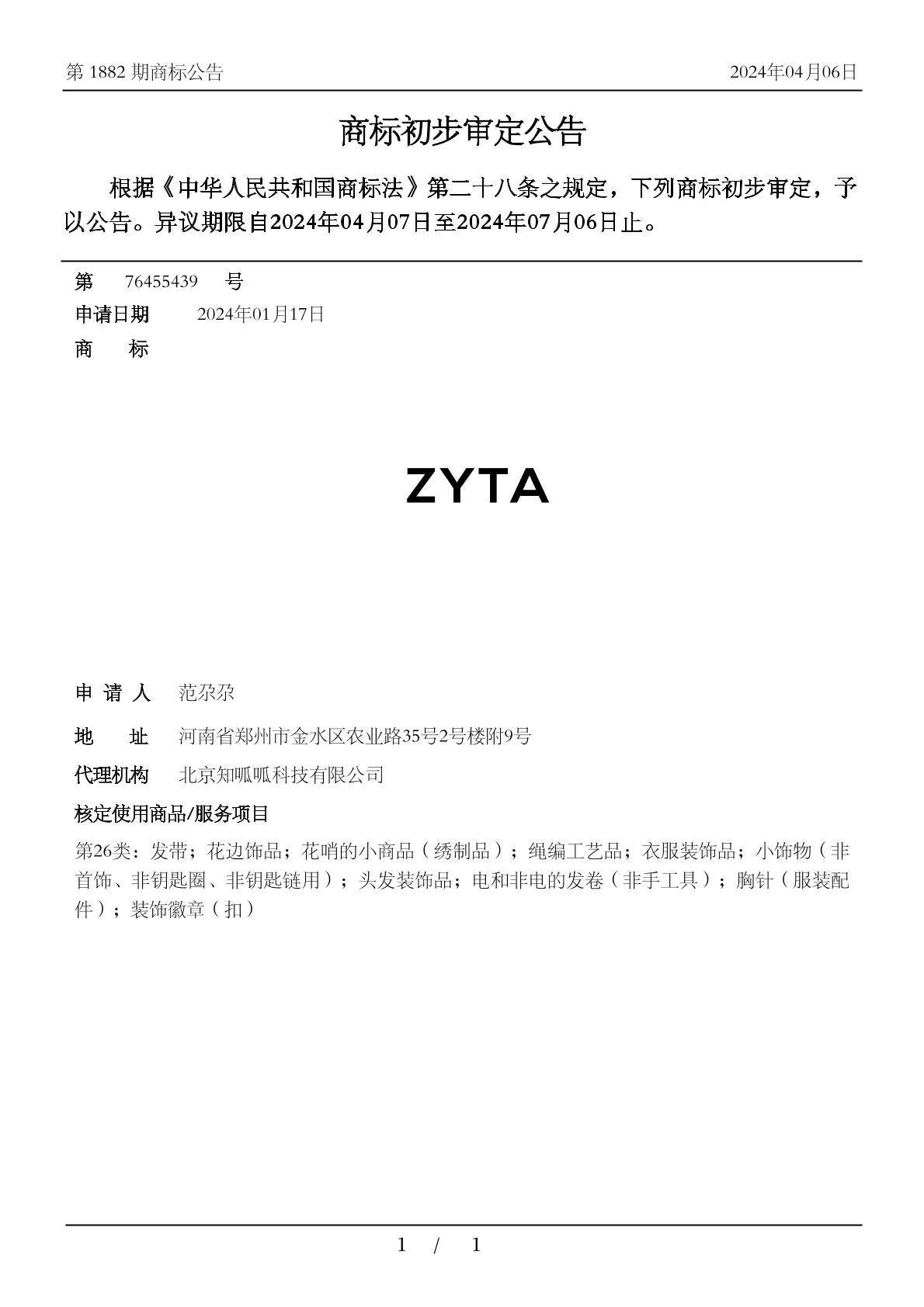【ZYTA】商标详情