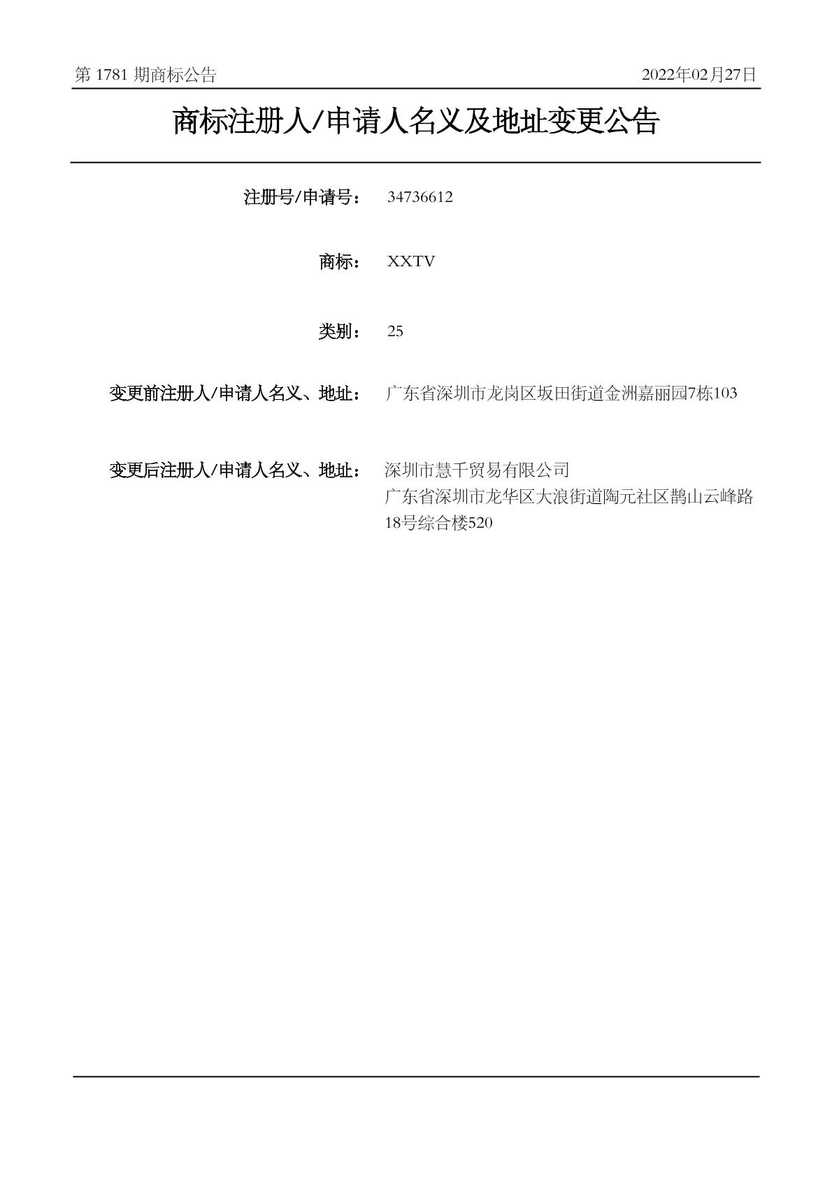 【XXTV】商标详情