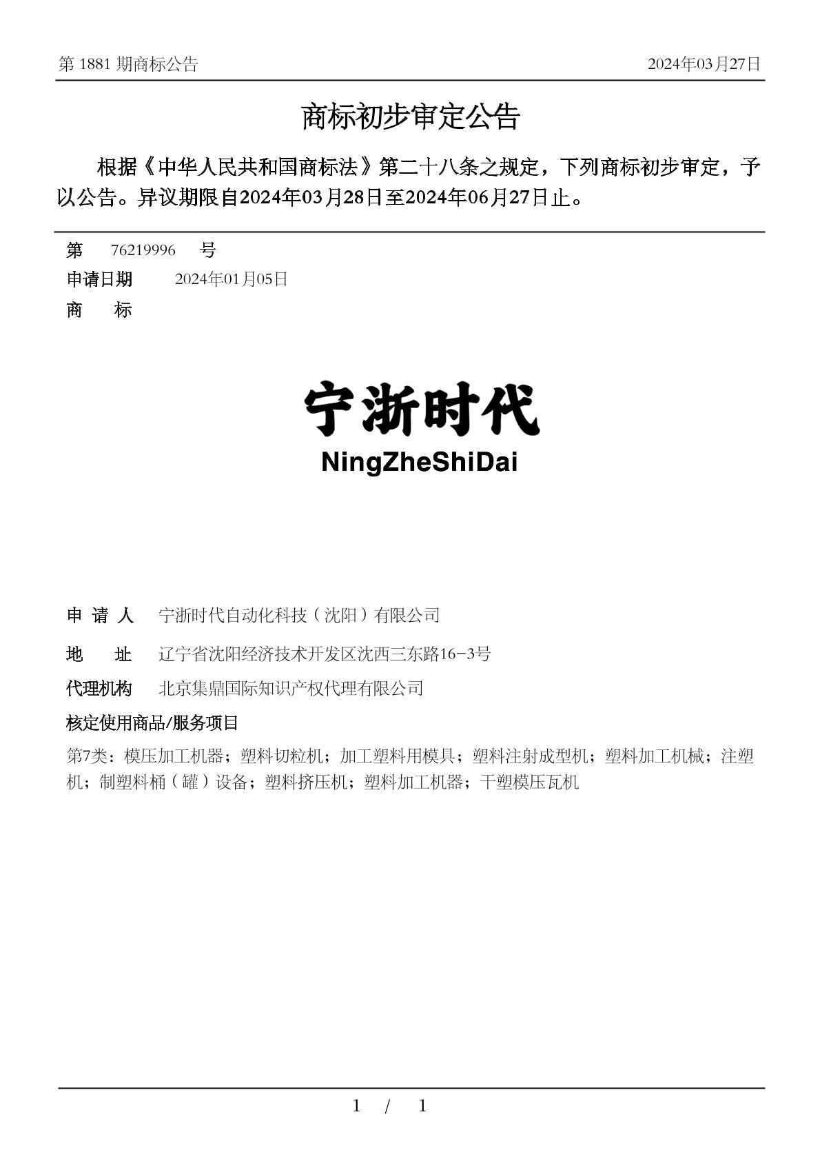 【宁浙时代】商标详情