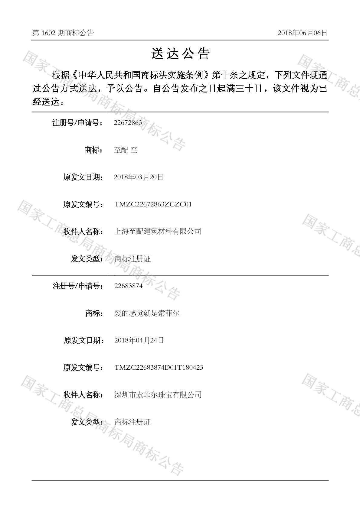 2018-06-06 商标注册申请 | 排版送达公告(商标注册证)