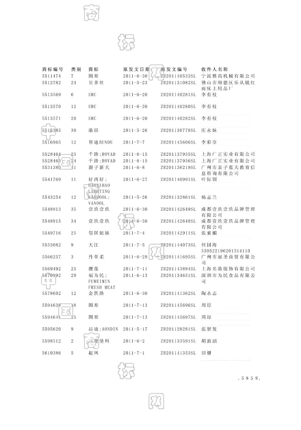 2011-12-06 商标转让 | 后台打印转让核准证明