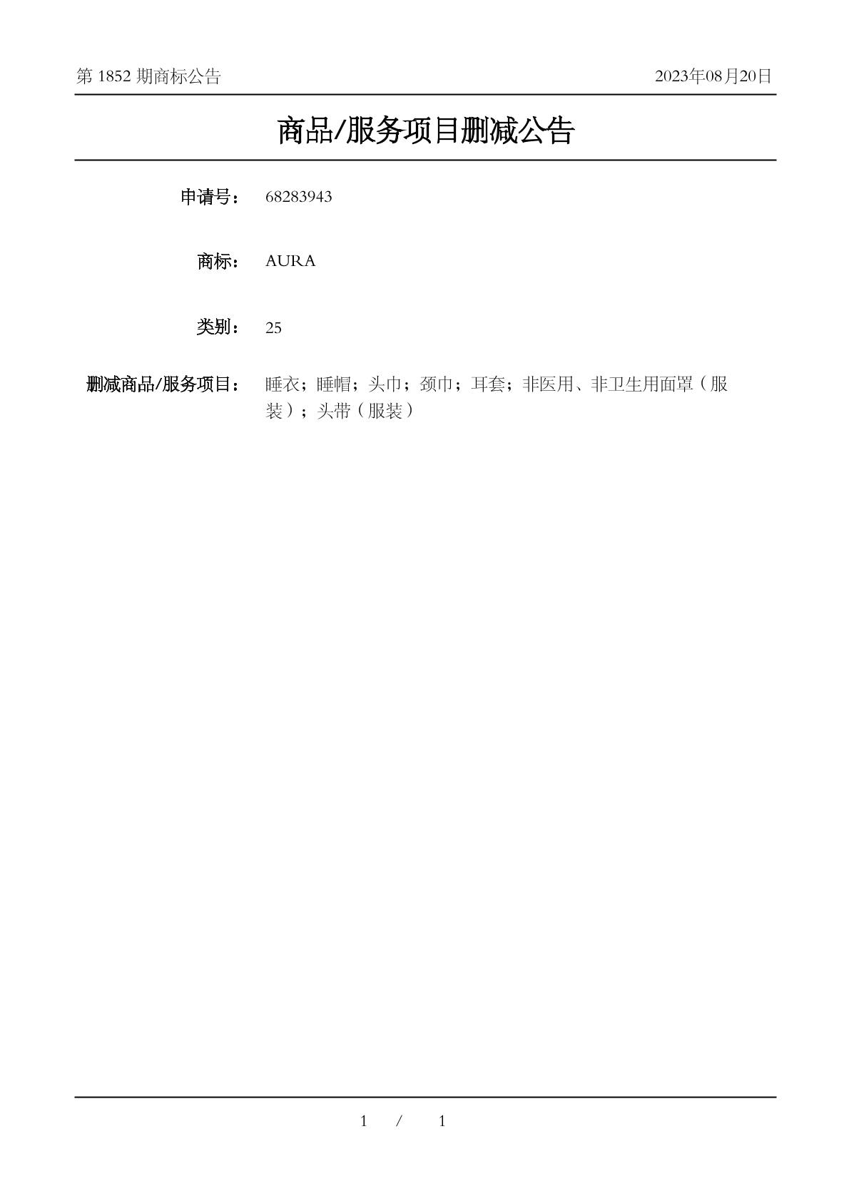 商品/服务项目删减公告 2023-08-20 第1852期 查看公告