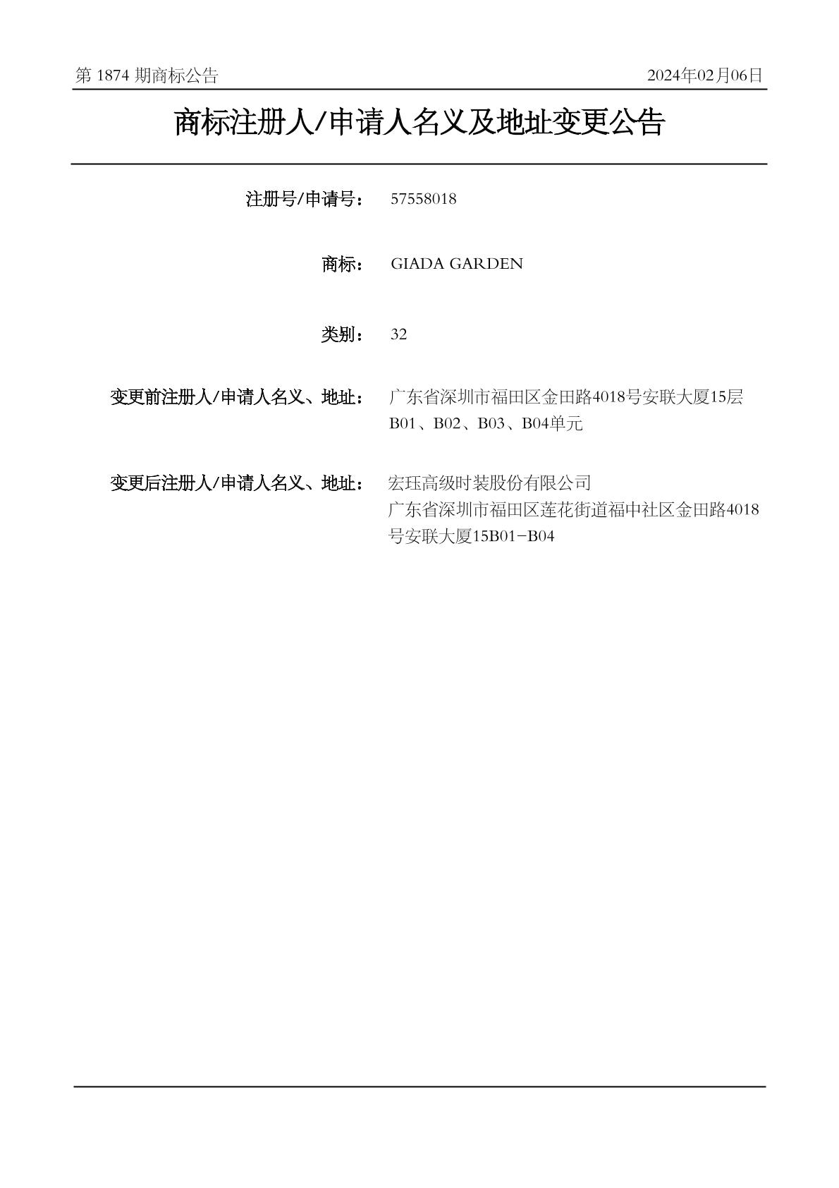 2024-02-01 变更商标申请人/注册人名义/地址 | 核准证明打印发送