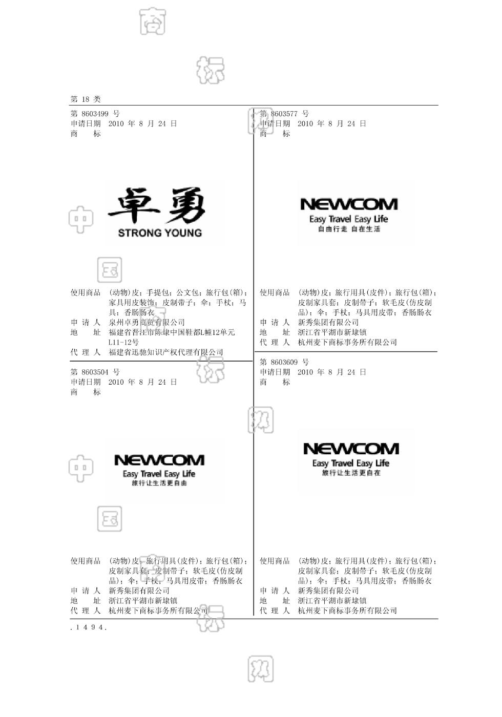 1801-(动物)皮;1802-旅行包(箱);1802-旅行用具(皮件);1802-皮制家具套;1802-皮制带子;1803-软毛皮(仿皮制品);1804-伞;1805-手杖;1806-马具用皮带;1807-香肠肠衣 - 1266