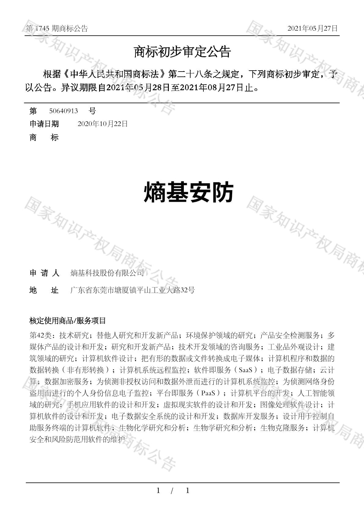 4209-产品安全检测服务;4209-多媒体产品的设计和开发;4209-技术开发领域的咨询服务;4209-技术研究;4209-替他人研究和开发新产品;4209-环境保护领域的研究;4209-研究和开发新产品;4211-生物化学研究和分析;4212-生物克隆服务;4212-生物学研究和分析;4216-多媒体产品的设计和开发;4216-工业品外观设计;4217-建筑领域的研究;4220-为侦测网络身份盗用而进行的个人身份信息电子监控;4220-为侦测非授权访问和数据外泄而进行的计算机系统监控;4220-云计算;4220-人工智能领域的研究;4220-图像处理软件设计;4220-多媒体产品的设计和开发;4220-平台即服务(PaaS);4220-手机应用软件的设计和开发;4220-把有形的数据或文件转换成电子媒体;4220-数据加密服务;4220-数据库开发服务;4220-电子数据存储;4220-电子数据安全系统的设计和开发;4220-虚拟现实软件的设计和开发;4220-计算机安全和风险防范用软件的维护;4220-计算机平台的开发;4220-计算机程序和数据的数据转换(非有形转换);4220-计算机系统远程监控;4220-计算机软件的设计和开发;4220-计算机软件设计;4220-设计用于控制自助服务终端的计算机软件;4220-软件即服务(SaaS) - 1745