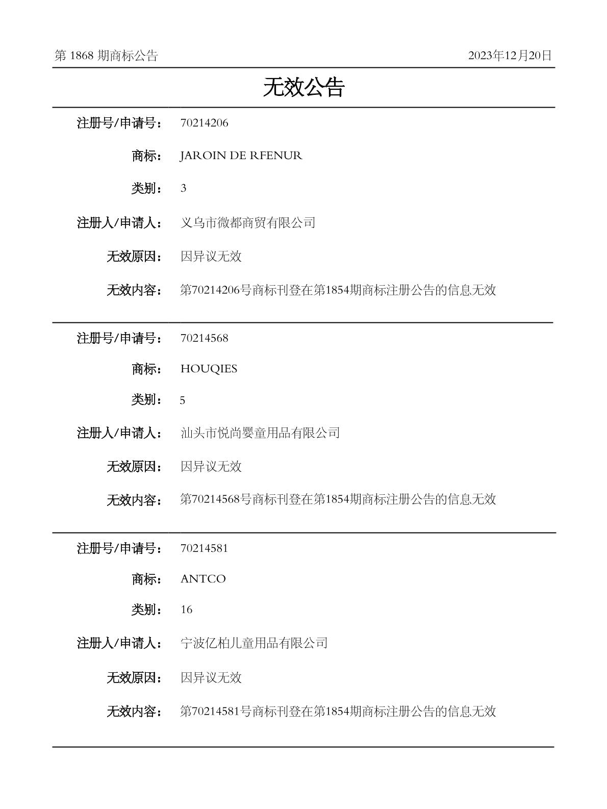 2023-12-06 商标异议申请 | 受理通知发文