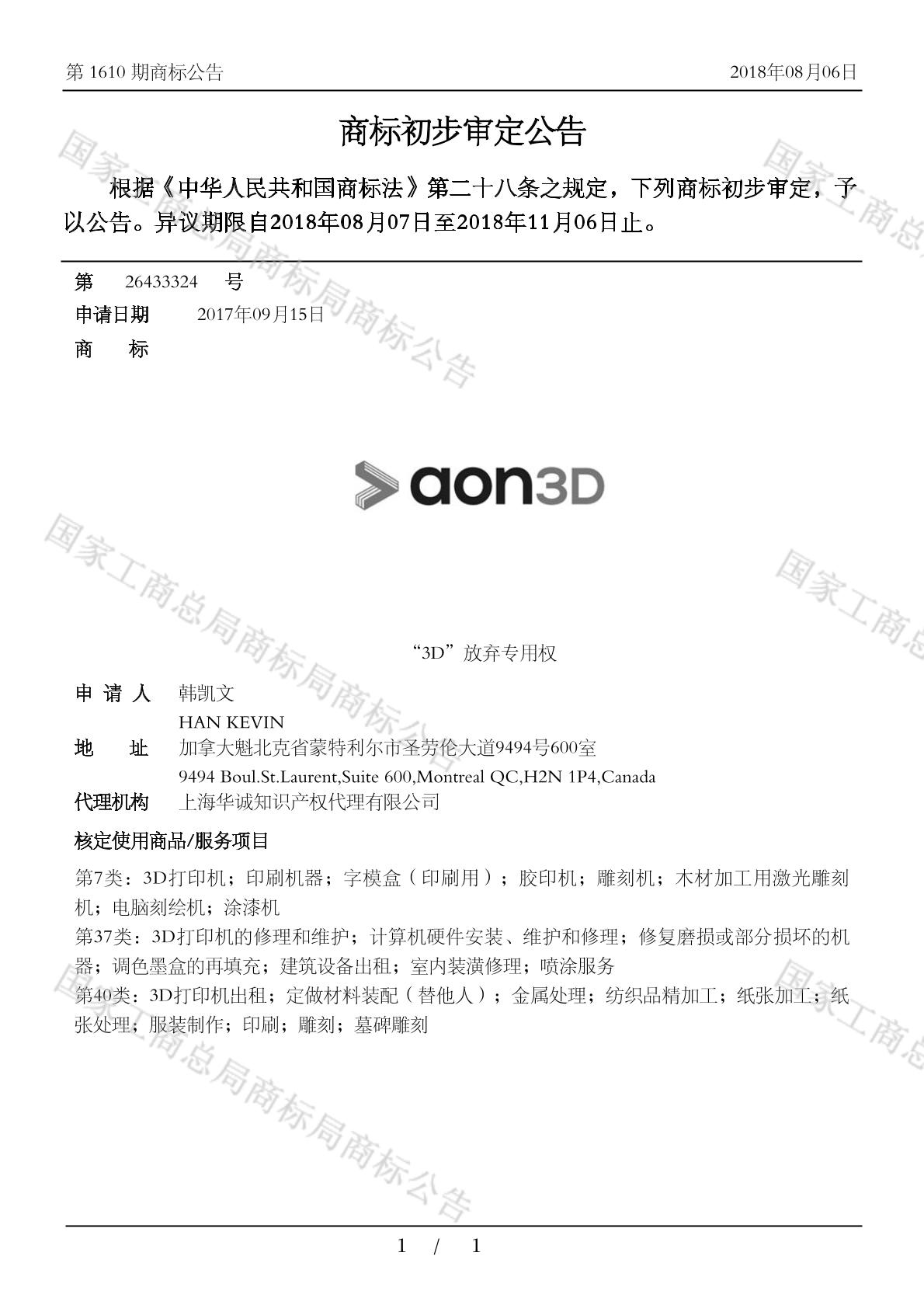 0705-印刷机器;0705-字模盒(印刷用);0705-胶印机;0716-木材加工用激光 雕刻机;0716-电脑刻绘机;0716-雕刻机;0747-涂漆机;0753-3D打印机 - 1610